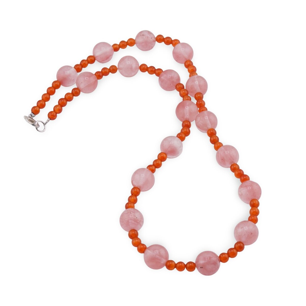 Colier Carneol sfera 4mm și Cuart cherry sfera 10mm