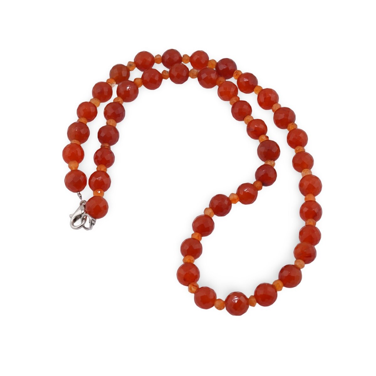Colier Carneol sfere fațetate 8mm și discuri fațetate 4mm