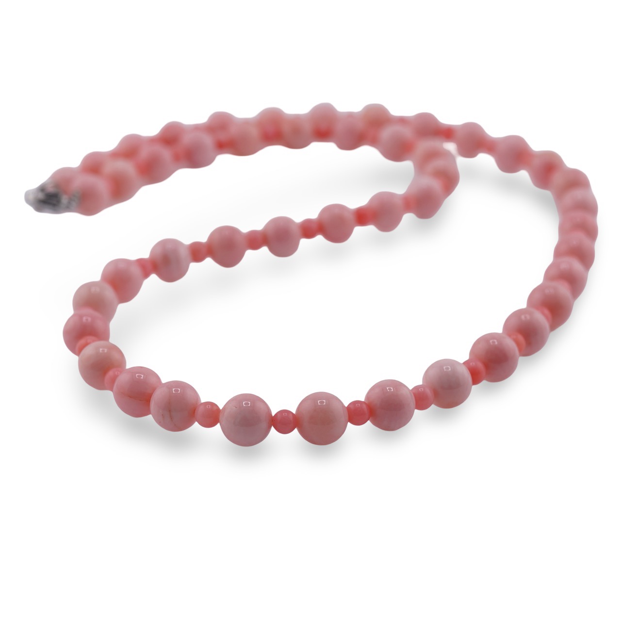 Delicat și ușor de integrat în orice ținută, acest colier cu coral roz îmbină armonios sfere fine de 3 mm cu accente de 6 mm, creând un ritm vizual plăcut și echilibrat. Realizat din cristal natural, coralul este natural, dar vopsit pentru a evidenția nuanța caldă de roz și strălucirea blândă. Pe o lungime de aproximativ 43 cm, colierul se așază confortabil la baza gâtului, aducând un strop de prospețime și feminitate. În tradiția mineralelor, coralul este cunoscut și ca „Piatra oceanului”, un carbonat de calciu organic care păstrează simbolic energia apei și calmul adâncurilor.