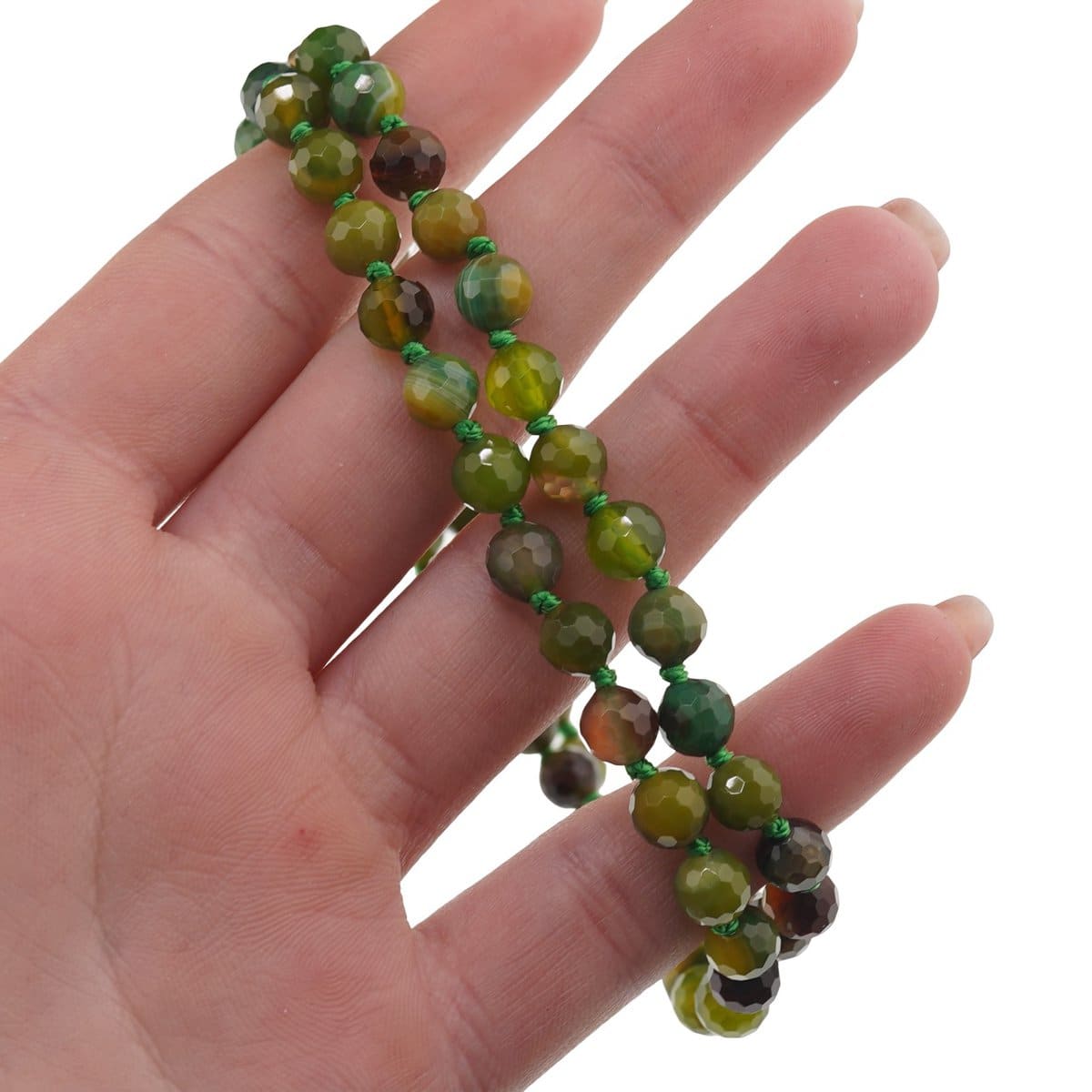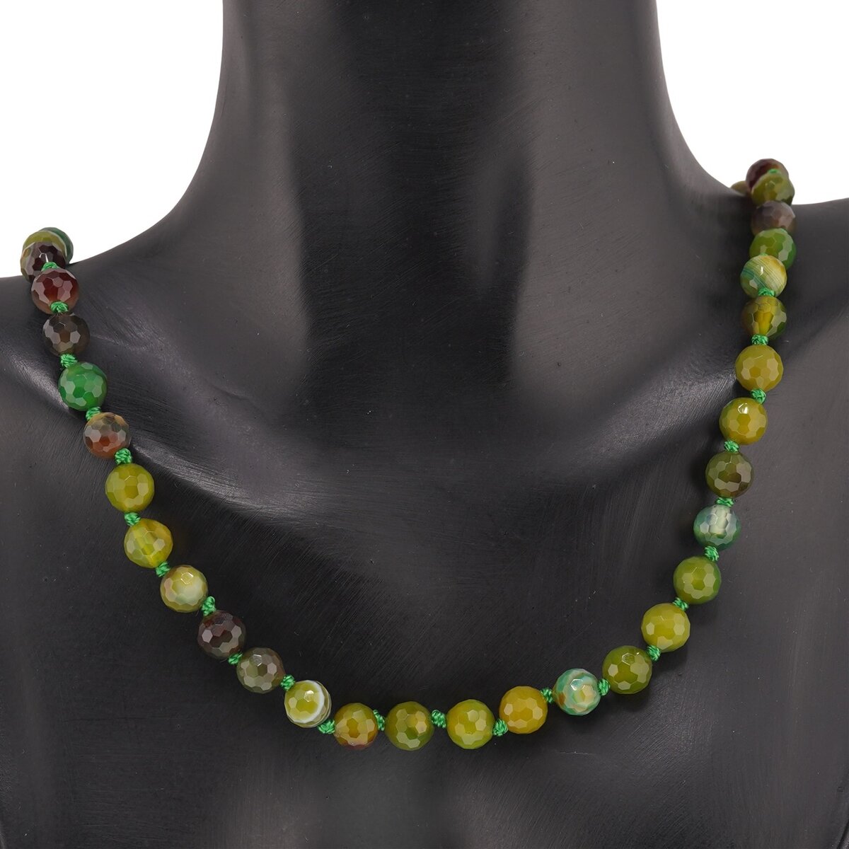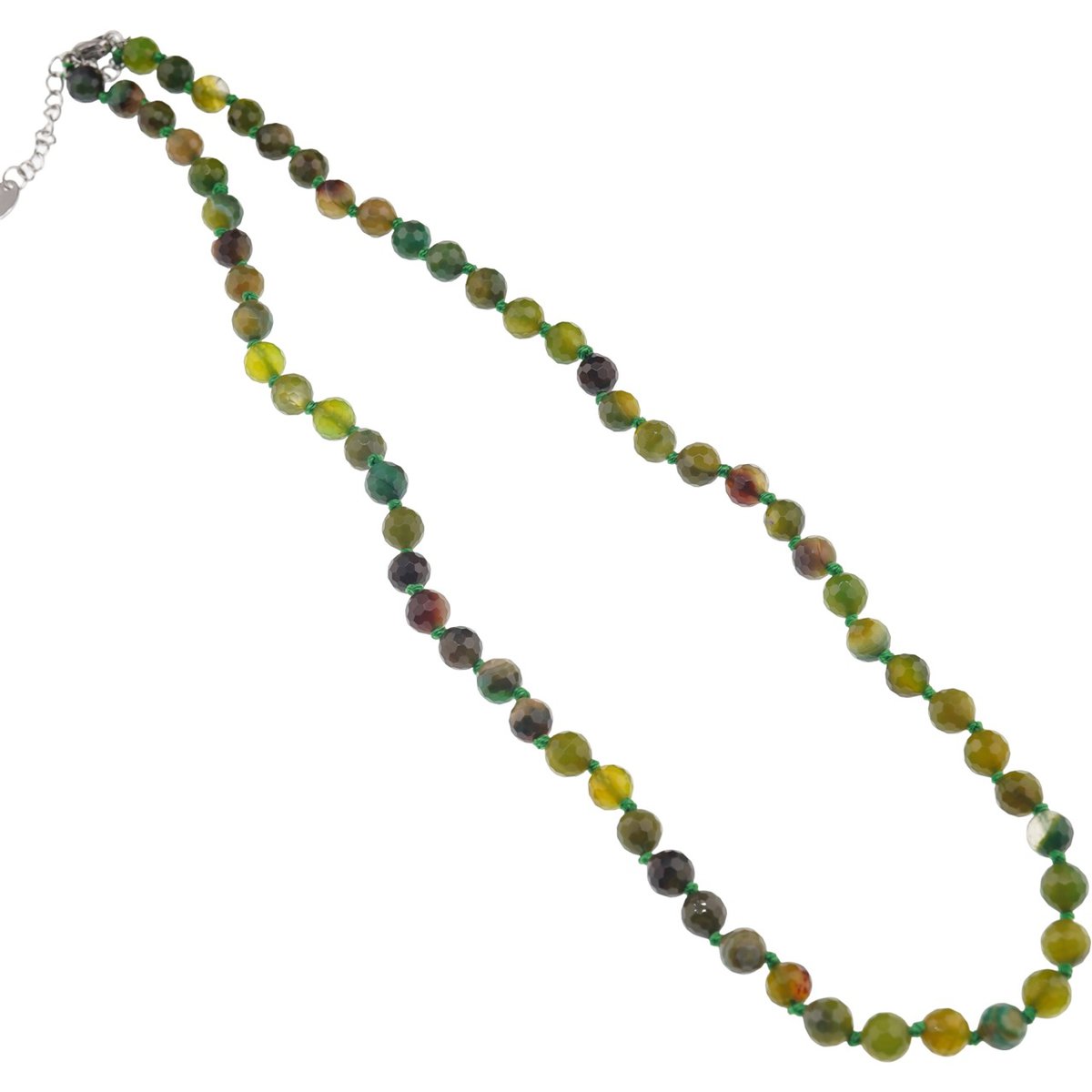 Colier cu noduri Agat verde sfere fațetate, 6mm