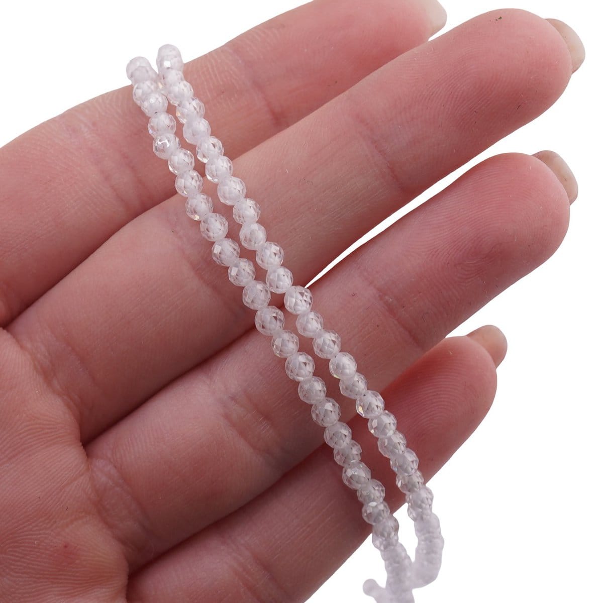 Colier cu sfere fațetate din Zircon alb, 3mm