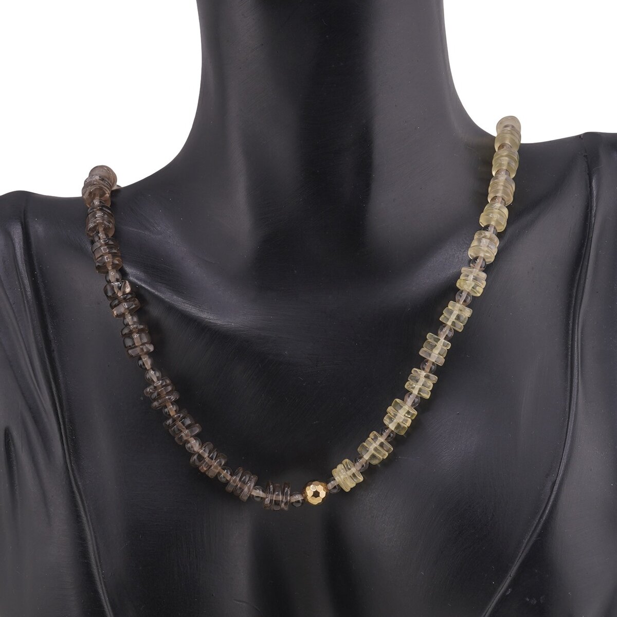 Colier Cuart fumuriu și Citrin rondele 6-7mm, Cuart fumuriu sfere 4mm și Hematit auriu
