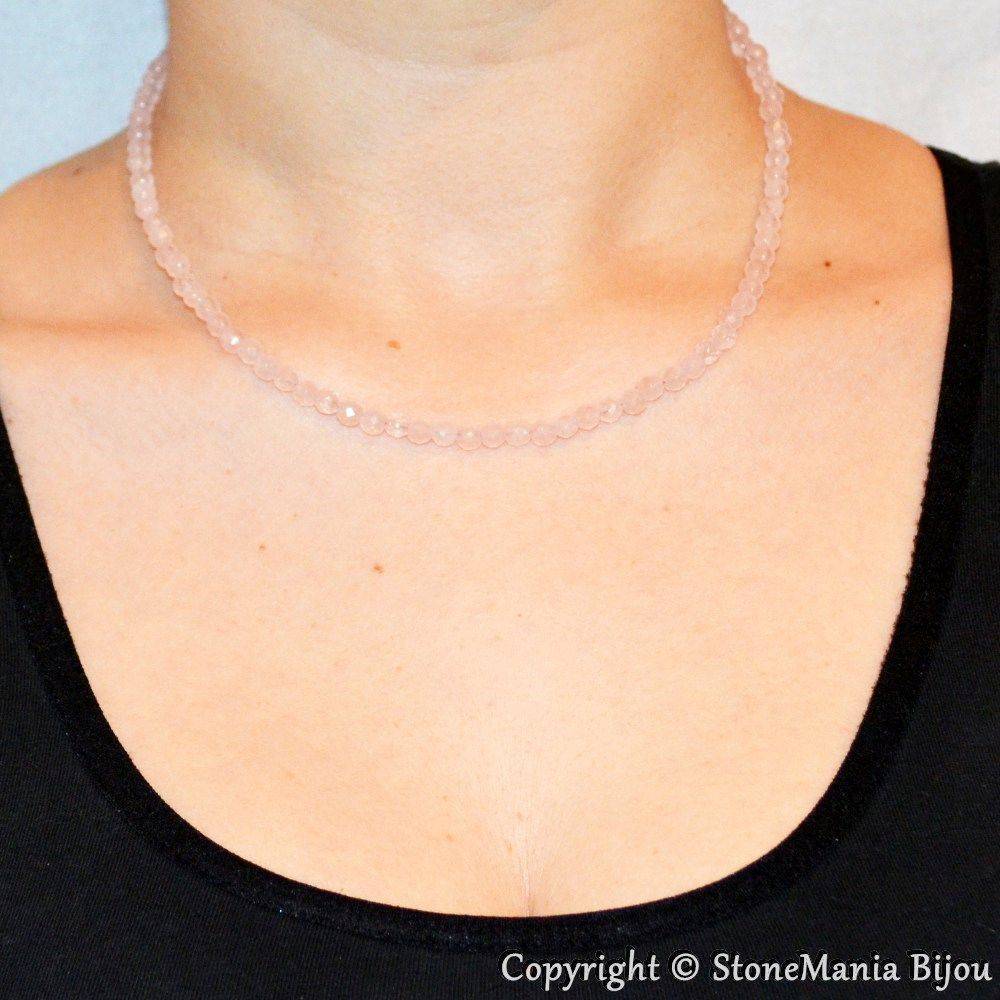 Colier confectionat cu pietre semipretioase naturale, Cuart roz sfere fatetate 4mm. Se ofera certificat de garantie si conformitate!