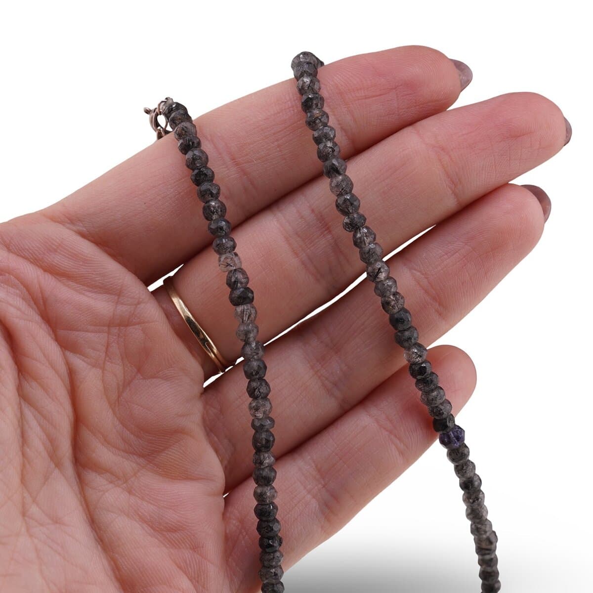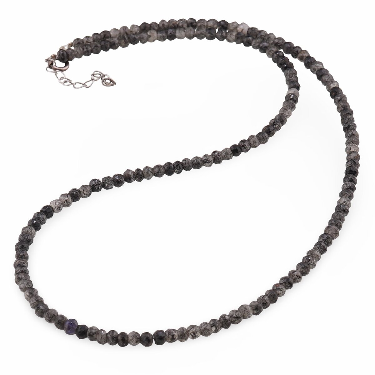 Creat pentru a îmbina simplitatea cu rafinamentul, acest colier din cuart turmalinat evidențiază contrastul plăcut dintre transparența cuartului și inserțiile negre de turmalină. Discurile fațetate de 4 mm surprind lumina discret, oferind un luciu echilibrat și un aspect modern, ușor de integrat în ținutele de zi cu zi sau la ocazii speciale.