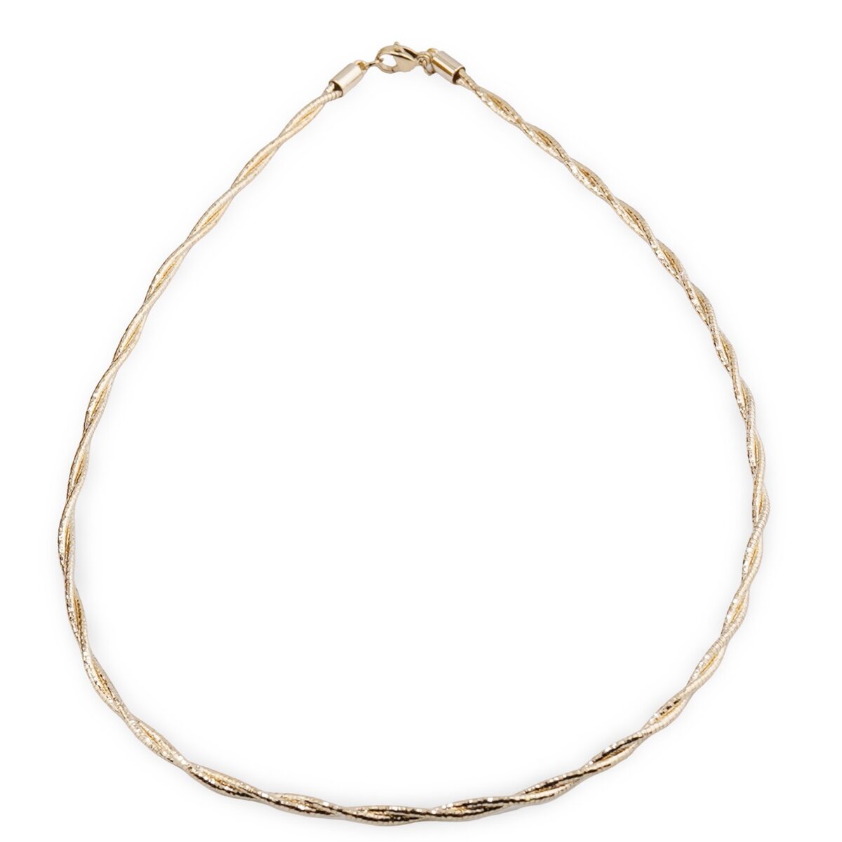 Cu o lungime de 44 cm, se așază la baza gâtului și evidențiază discret linia claviculei. Îl poți purta singur, pentru un efect curat, sau în straturi cu alte lanțuri subțiri pentru un look personal. Modelul twisted rope susține și un pandantiv ușor, dacă vrei să-i adaugi o notă personală.