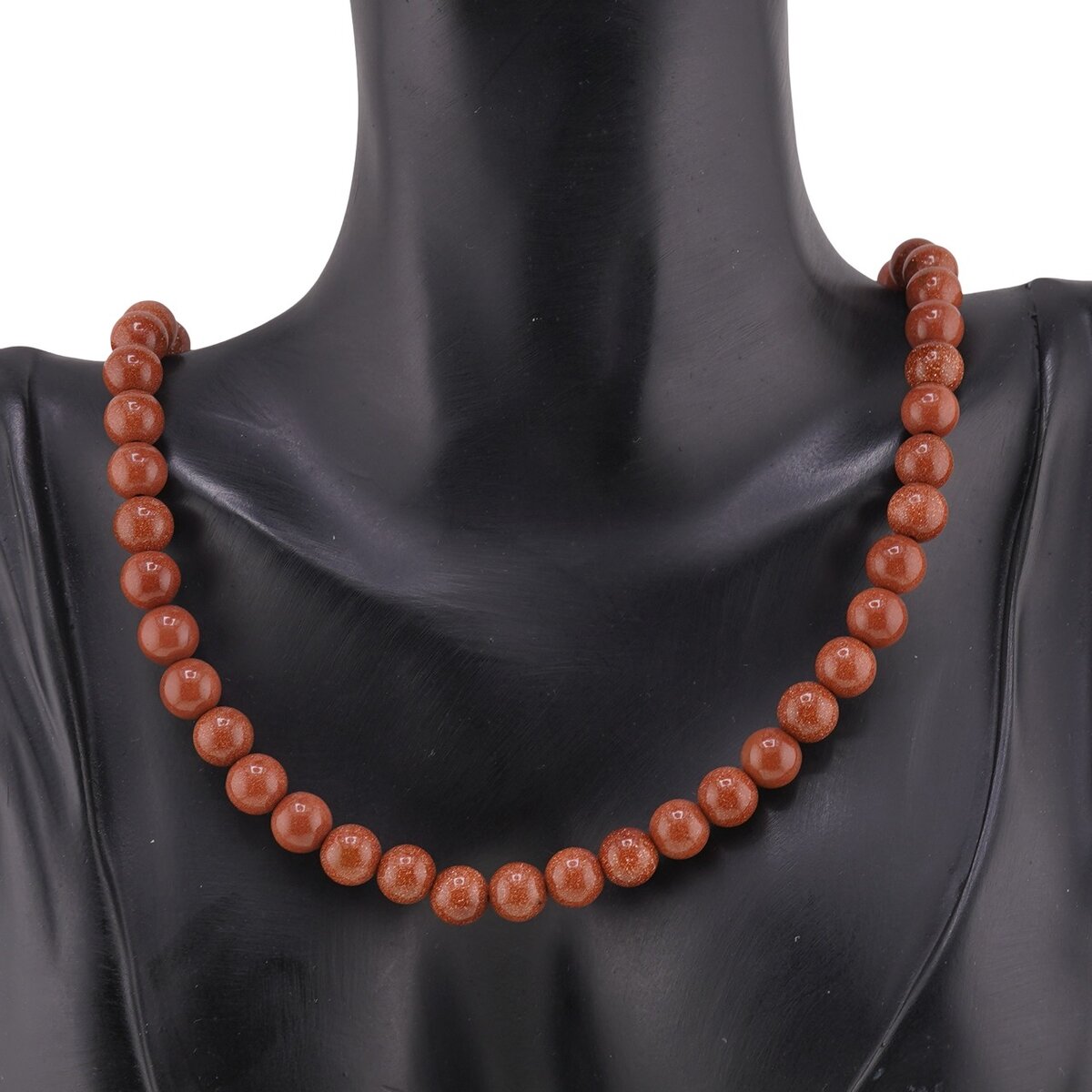 Acest colier din Goldstone, alcătuit din sfere de 8 mm, aduce un ton cald de maro și o sclipire discretă care prinde frumos lumina. La o lungime de 45 cm, se așază natural la baza gâtului, oferind un accent elegant pe care îl poți purta cu ușurință zi de zi.