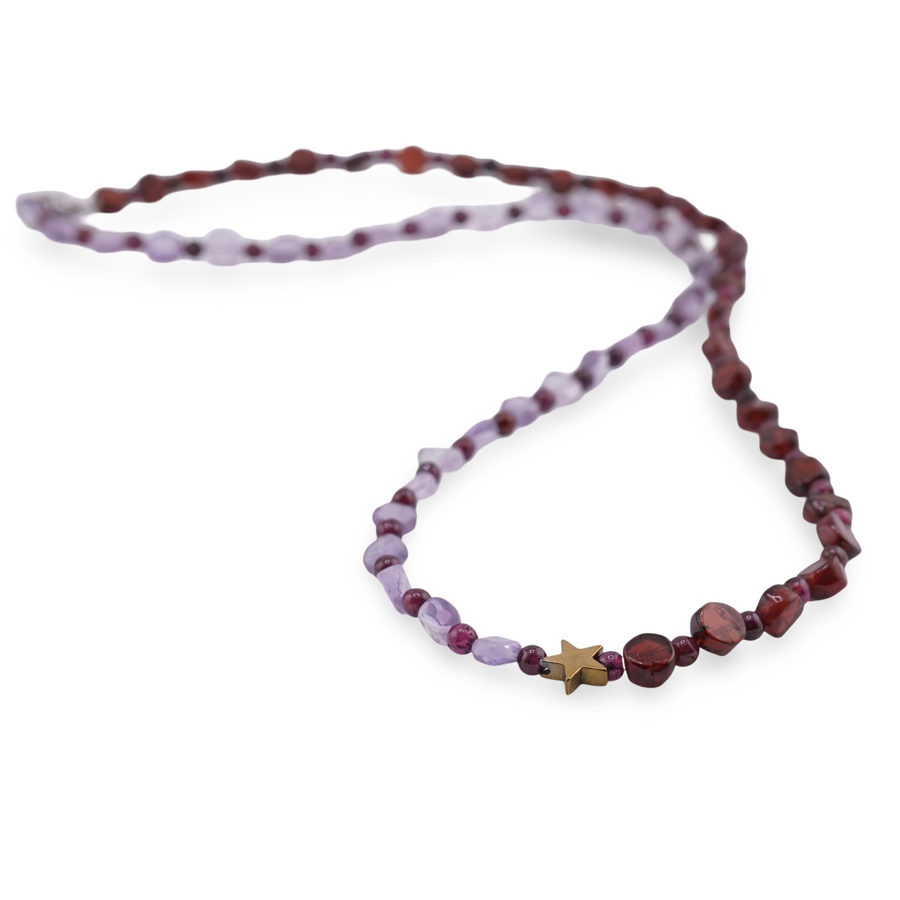 Colier Granat banuti 5mm si sfere 2mm, Ametist banuti 5mm, Hematit steluta aurie