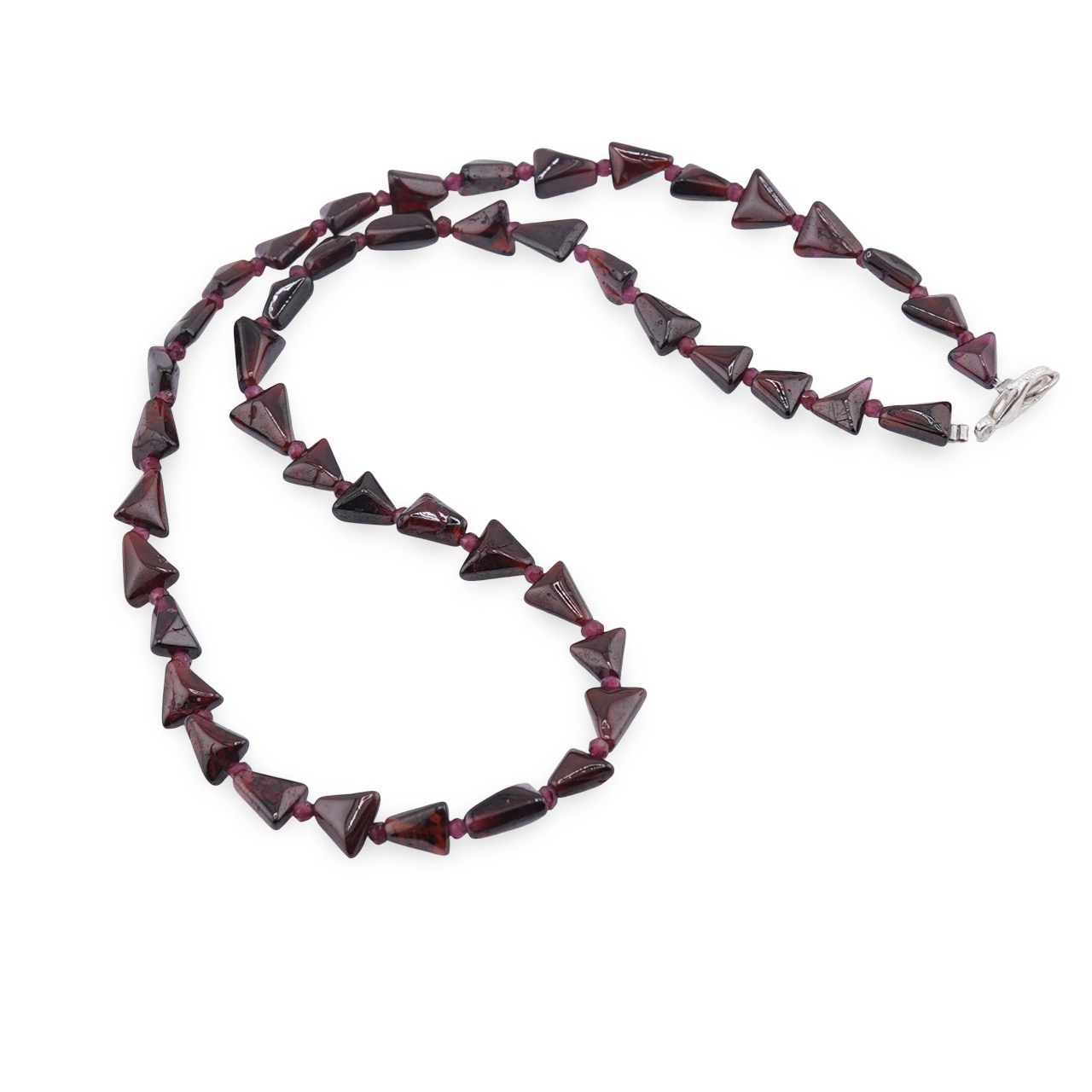 Colier Granat triunghi 6-8mm si discuri fatetate 2mm