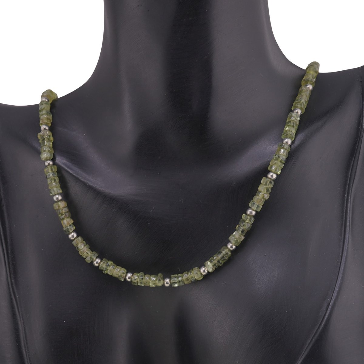 Colier Granat verde rondele 4mm, Zirconiu sfere fațetate 4mm și bumbi argintii