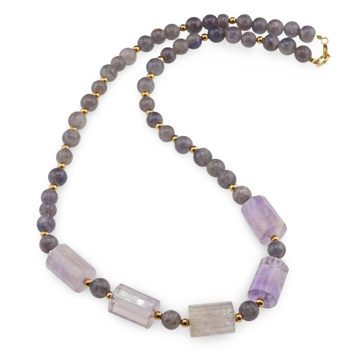 Colier Iolith 6mm, tuburi fatetate 14mm si elemente aurii