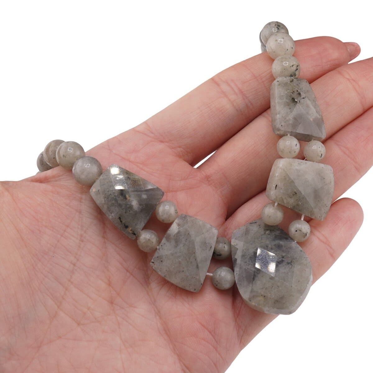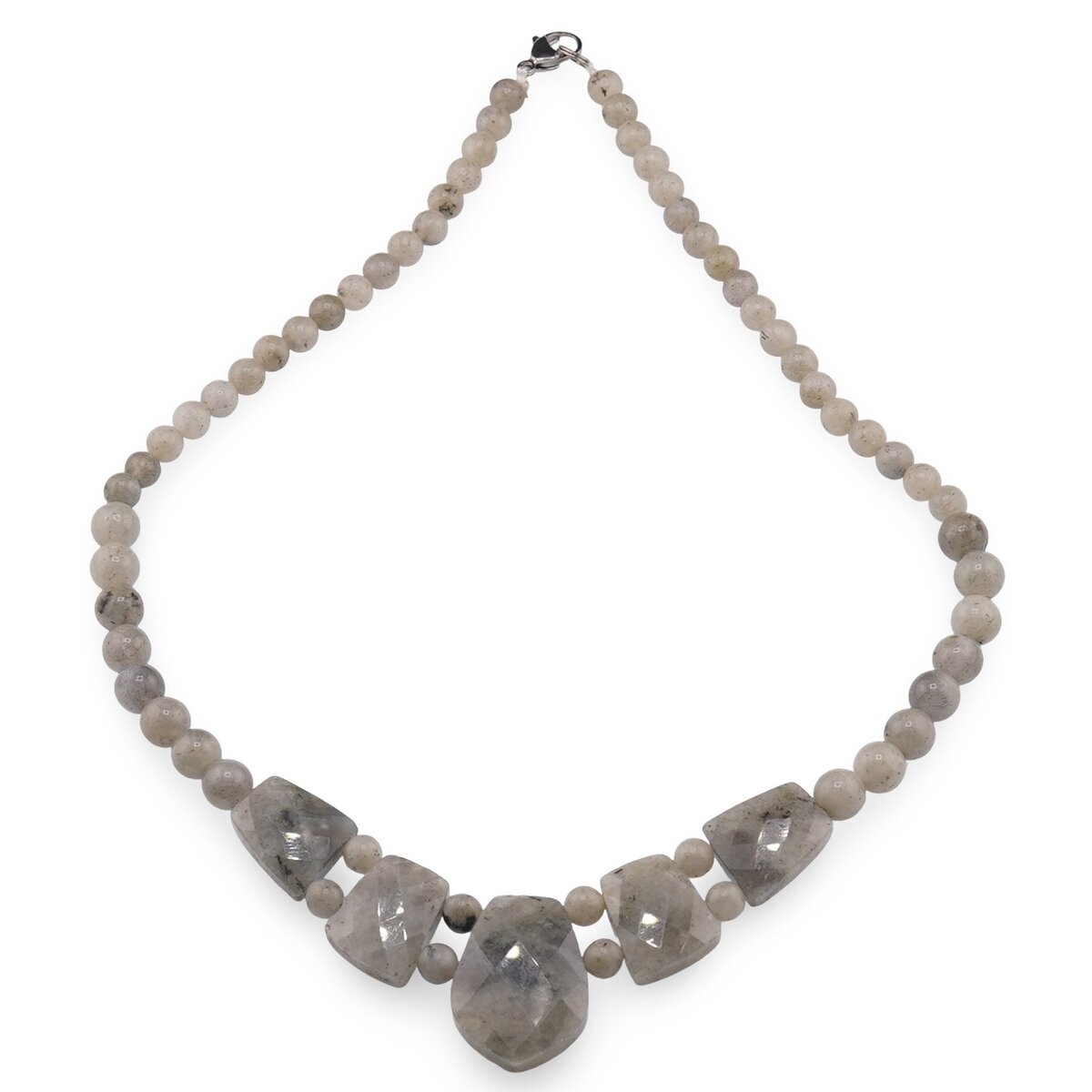 Colier Labradorit cristale fațetate și sfere 6–8mm