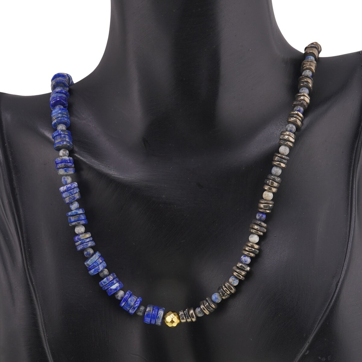 Acest colier cu Lapis lazuli, Pirita si Hematit auriu este creat pentru tine daca iti doresti mai multa claritate mentala, inspiratie si echilibru interior, intr-o forma usor de purtat zi de zi. Combinatia dintre albastrul profund al Lapisului, reflexele gri-aurii ale Piritelor si stralucirea discreta a Hematitului aduce la un loc energie, stabilitate si protectie energetica intr-un singur accesoriu.