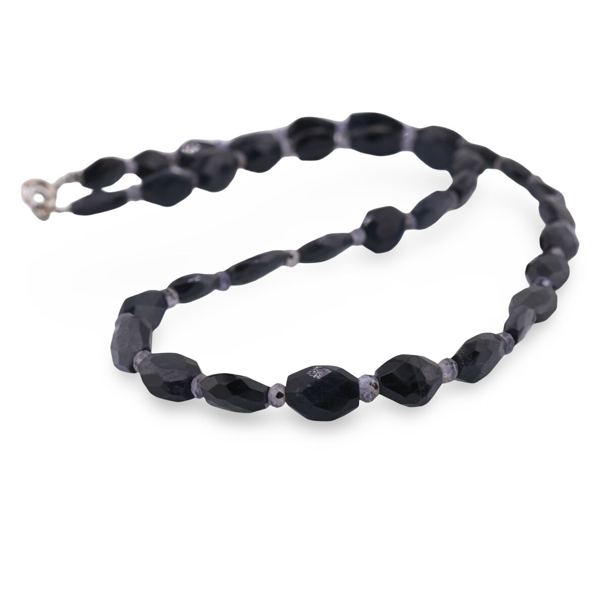 Alege un colier care vorbește despre claritate și calm interior. Realizat din Iolith (cunoscut și ca Cordierit, Iolite sau „piatra viziunii interioare”), acest șirag albastru te întâmpină cu nuanțe profunde și reflexii discrete, obținute prin tăierea în discuri fațetate și elemente neuniforme. Piesele variază natural între 3 și 10 mm, cu accente fațetate de 8–10 mm și discuri fine de aproximativ 3 mm, iar lungimea de 43 cm îl așază aproape de gât pentru o prezență plăcută zi de zi. Cristalele sunt 100% naturale, cu o rezistență bună în timp, iolithul având 7–7,5 pe scara Mohs.