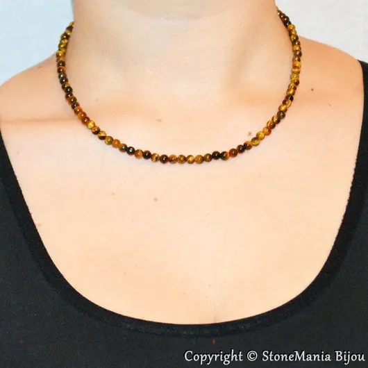 Colier confectionat cu pietre semipretioase naturale, Ochi de tigru sfere 4mm. Se ofera certificat de garantie si conformitate!