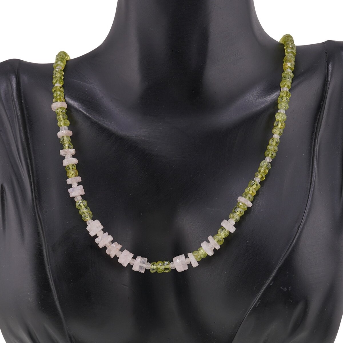 Colier Peridot discuri fatetate 4-5mm, Cuart roz discuri fatetate 6mm, Piatra lunii discuri 3mm si argint 925