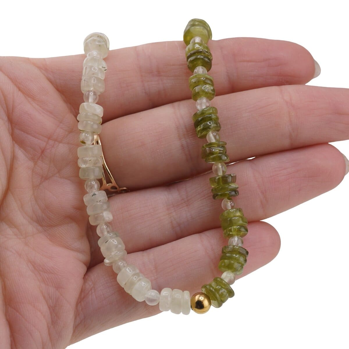 Acest colier cu peridot, prehnit și hematit auriu este gândit pentru tine dacă îți dorești mai multă claritate interioară, energie și încredere în propriul drum. Nu este doar un accesoriu plăcut la vedere, în nuanțe de verde delicat și accente metalice aurii, ci și o combinație de cristale naturale alese pentru susținerea ta zilnică.