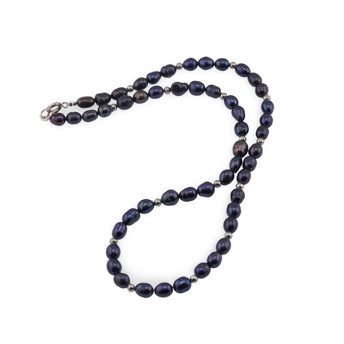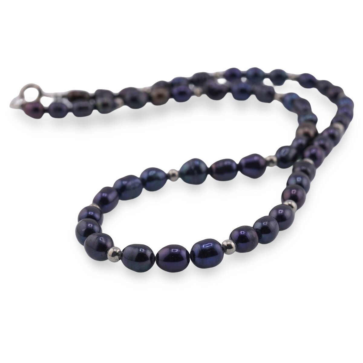Colier Perle de cultură lunguiete albastre 6–7 mm și elemente argintii
