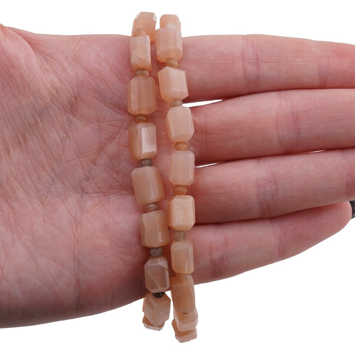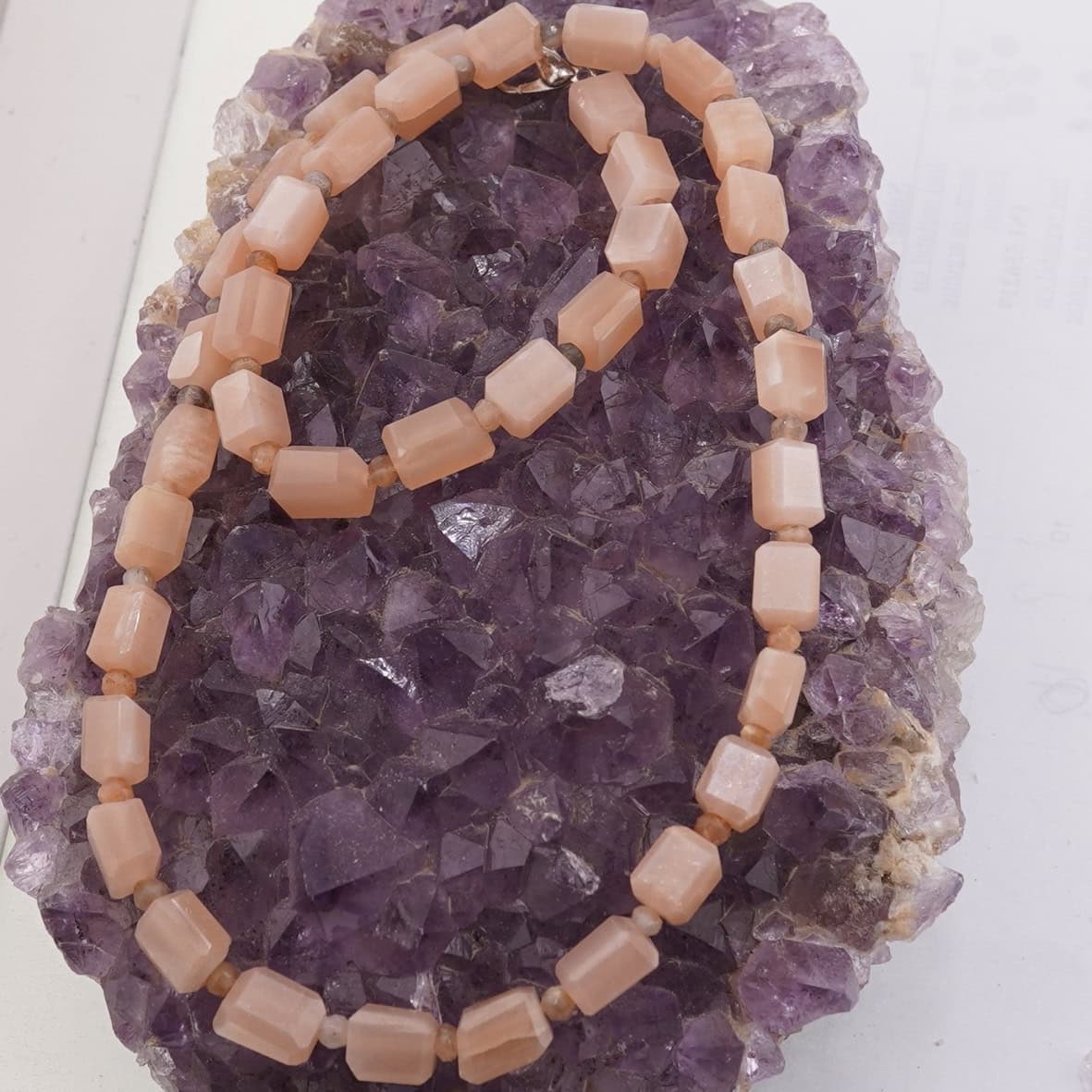 Creat pentru momentele în care vrei să-ți asculți inima și să-ți liniștești gândurile, acest colier cu Piatra Lunii în nuanțe piersică-portocaliu aduce o strălucire discretă și caldă. Cristalele naturale, atent fațetate în dreptunghiuri de 8–10 mm și discuri de 4 mm, creează jocuri de lumină fine, potrivite atât pentru ținutele de zi, cât și pentru serile în care cauți o notă elegantă. Lungimea de 43–44 cm îl așază plăcut la baza gâtului, pentru o purtare comodă.