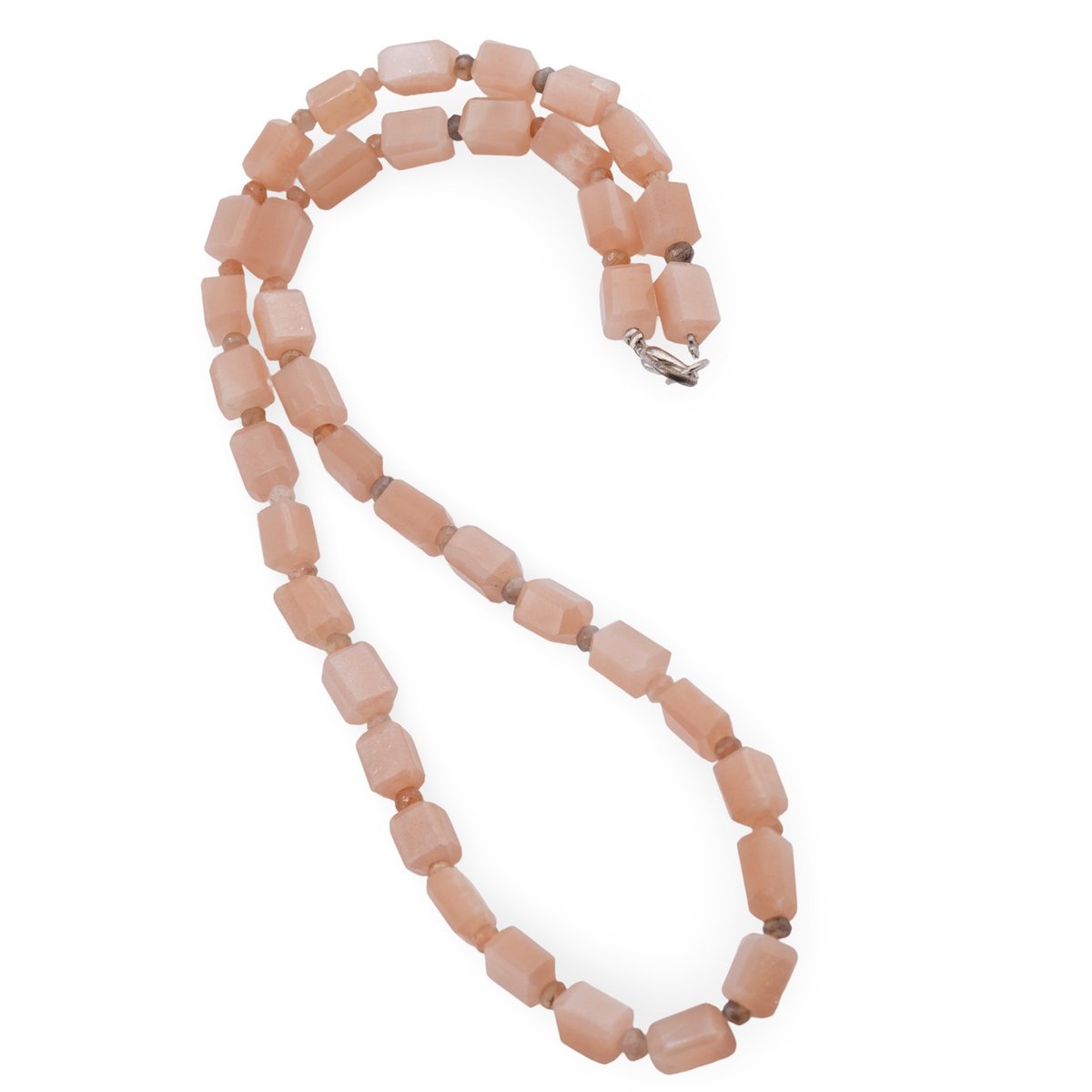 Colier Piatra lunii piersica fatetat 8-10mm si discuri fatetate 4mm