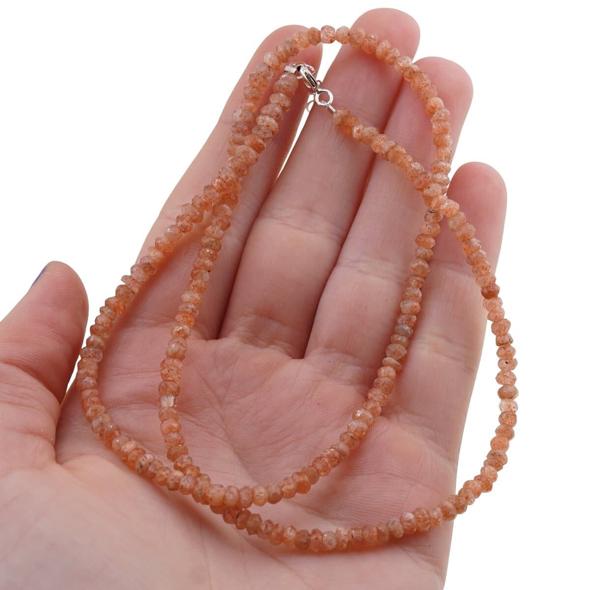 Versatil și plăcut la purtare, colierul se așază frumos la baza gâtului, iar fațetele fine ale discurilor captează lumina într-un joc discret de sclipiri. Îl poți purta singur, pentru un accent cald de culoare, sau în combinație cu alte bijuterii din pietre semiprețioase. Tradițional, Piatra Soarelui este apreciată de cei născuți în luna iulie și se spune că aduce susținere celor născuți în zile de luni, fiind cunoscută și sub denumirile de feldspat aventurizant și Sunstone.