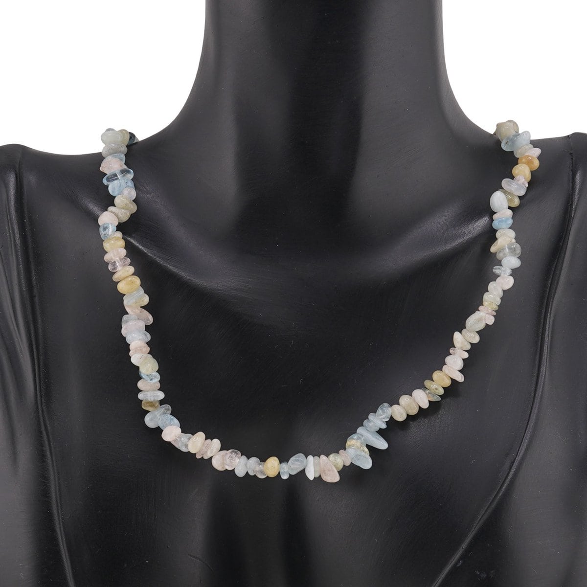 Colierul cu pietre neuniforme din Berile, cu cristale naturale albastru-transparent de 6-8 mm, este creat pentru tine dacă îți dorești mai mult echilibru emoțional și o stare interioară mai clară. Fiecare bucățică de piatră este diferită ca formă, astfel încât colierul are un aspect organic, ușor sălbatic, care păstrează energia naturală a cristalului.