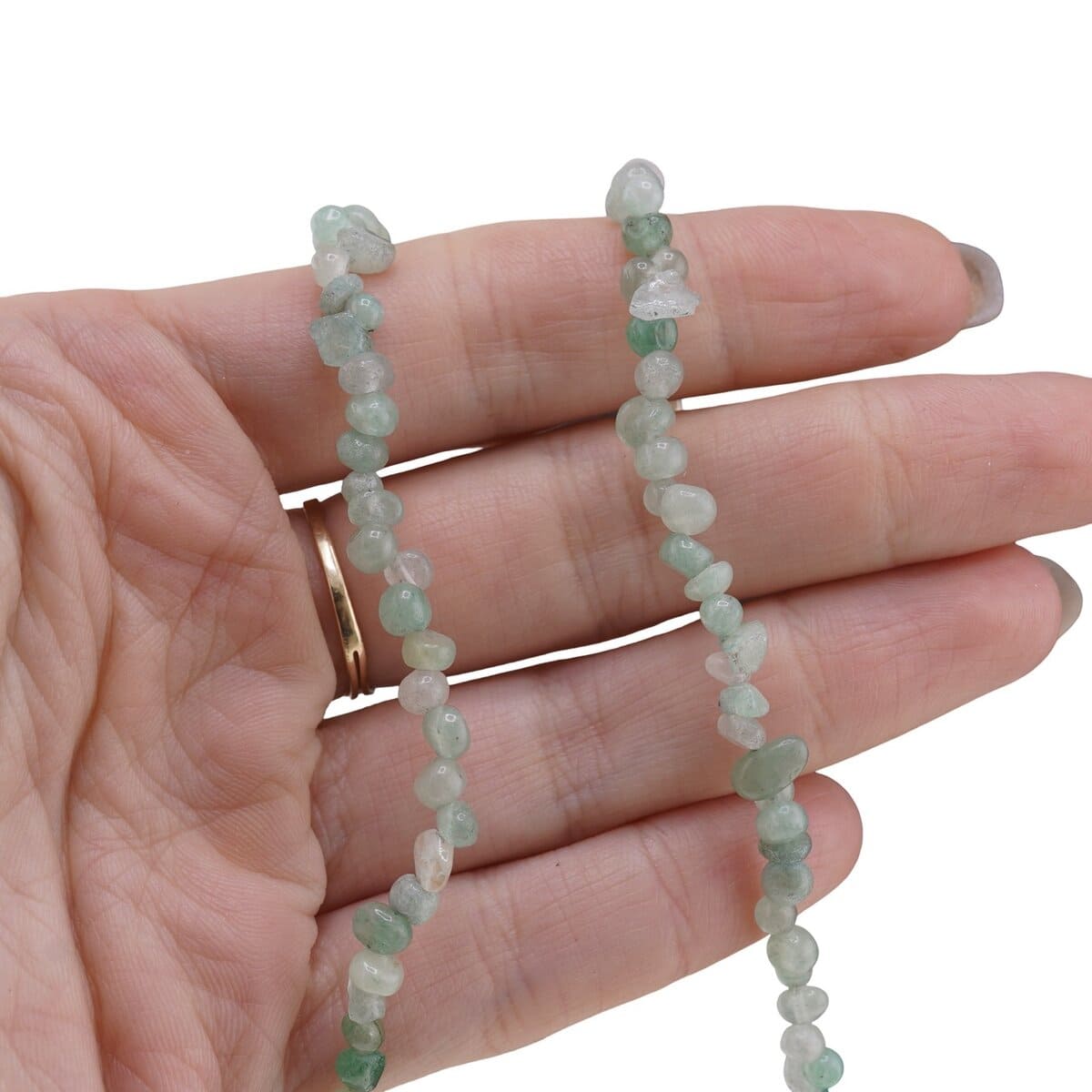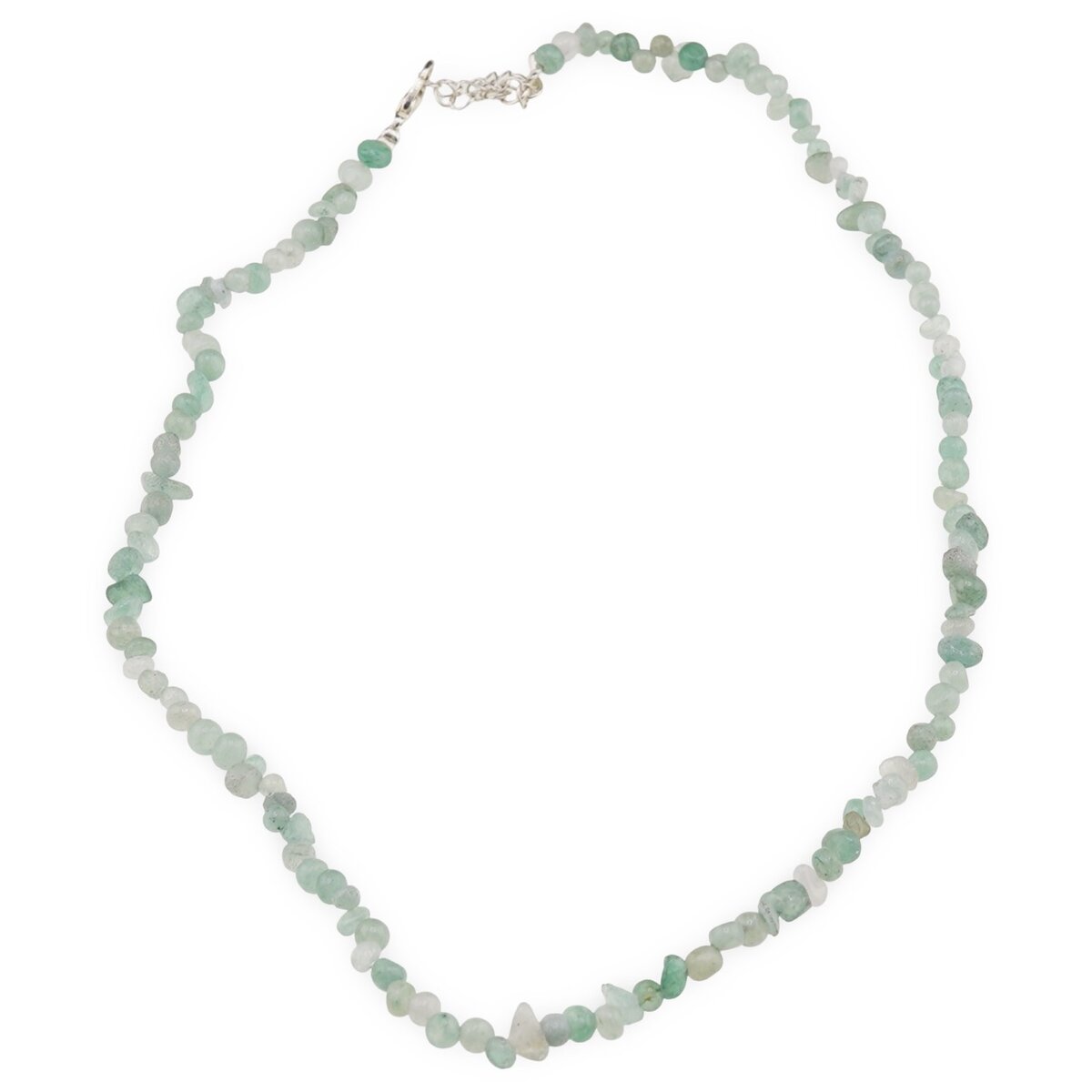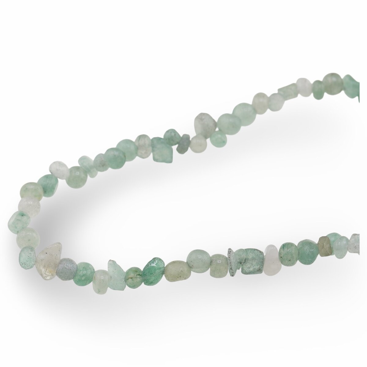 Colierul din pietre neuniforme de aventurin verde, cu cristale naturale de aproximativ 4–6 mm dispuse pe o lungime de 35 cm, este creat pentru tine dacă îți dorești mai multă claritate interioară și stabilitate emoțională în viața de zi cu zi. Nuanța sa verde, blândă și totuși plină de viață, îl face ușor de purtat atât singur, cât și în combinație cu alte bijuterii din metal sau cristale.