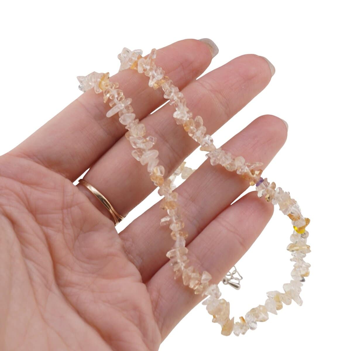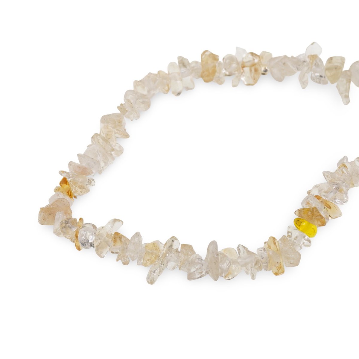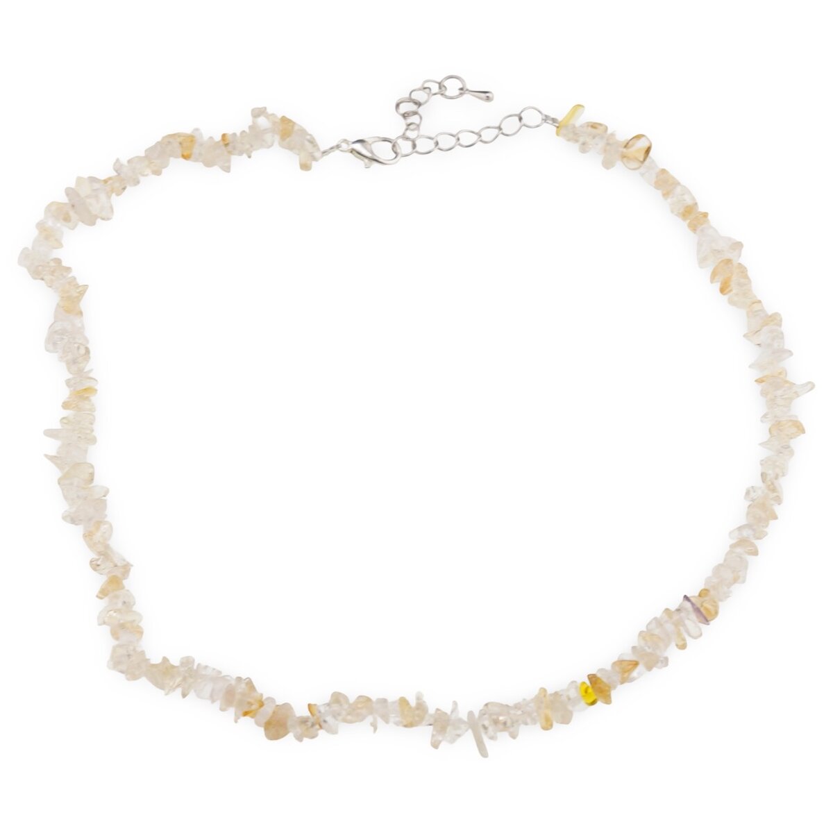 Colierul din pietre neuniforme de Citrin, cu cristale de 6-8 mm pe o lungime de aproximativ 35 cm, este creat pentru tine dacă îți dorești mai multă vitalitate, claritate și deschidere către prosperitate. Nuantele de galben cald ale cuartului galben, cunoscut și ca „piatra succesului”, aduc un plus de lumină ținutelor tale de zi cu zi, păstrând în același timp un aer natural și autentic.