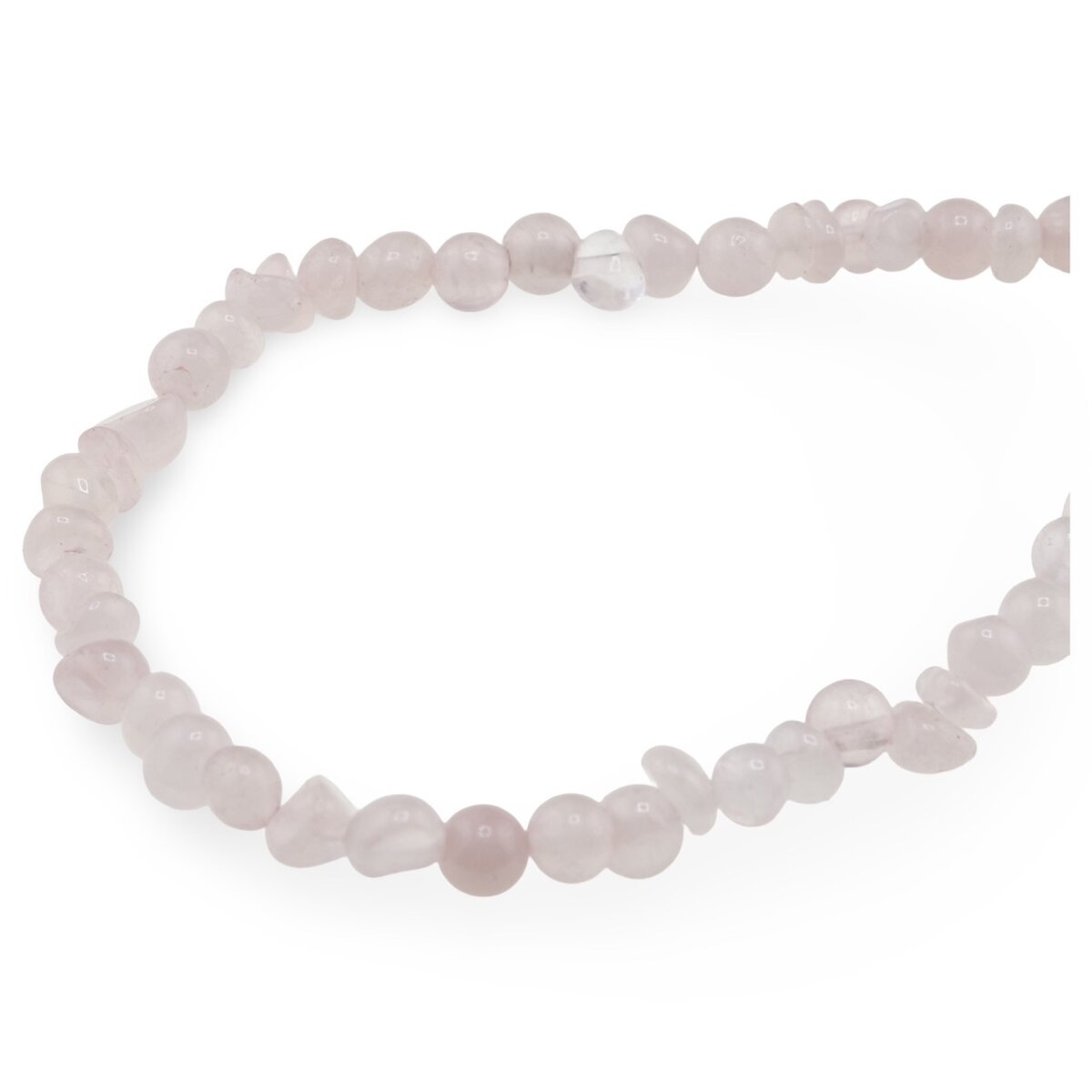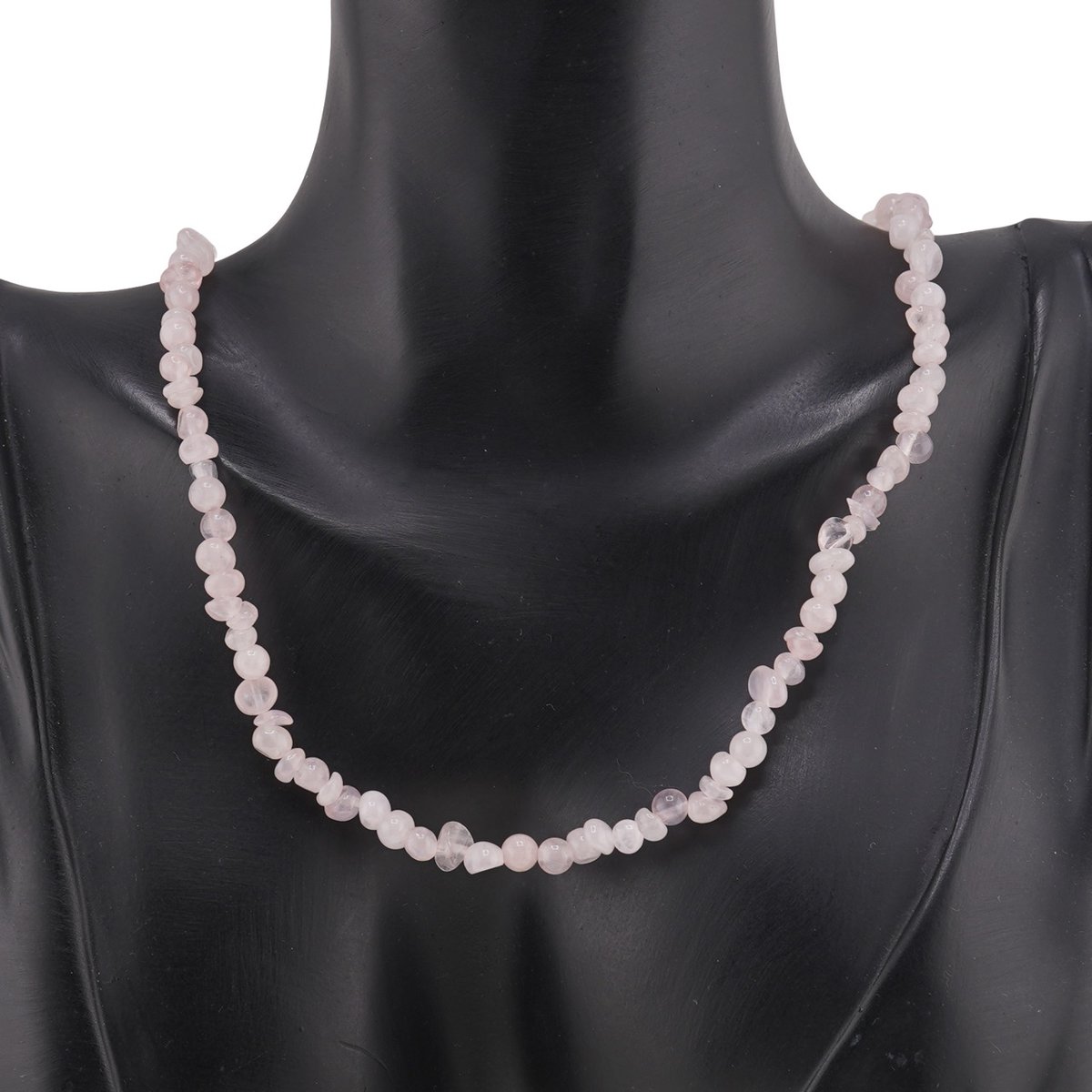 Culoarea roz delicat a cristalelor adaugă un aer cald și blând, ușor de integrat în stilul tău, fie că preferi ținute casual sau mai elegante. Forma neuniformă a pietrelor creează un joc interesant de reflexii, astfel încât colierul nu arată niciodată la fel, schimbându-și ușor aspectul în funcție de lumină și de hainele pe care le porți.