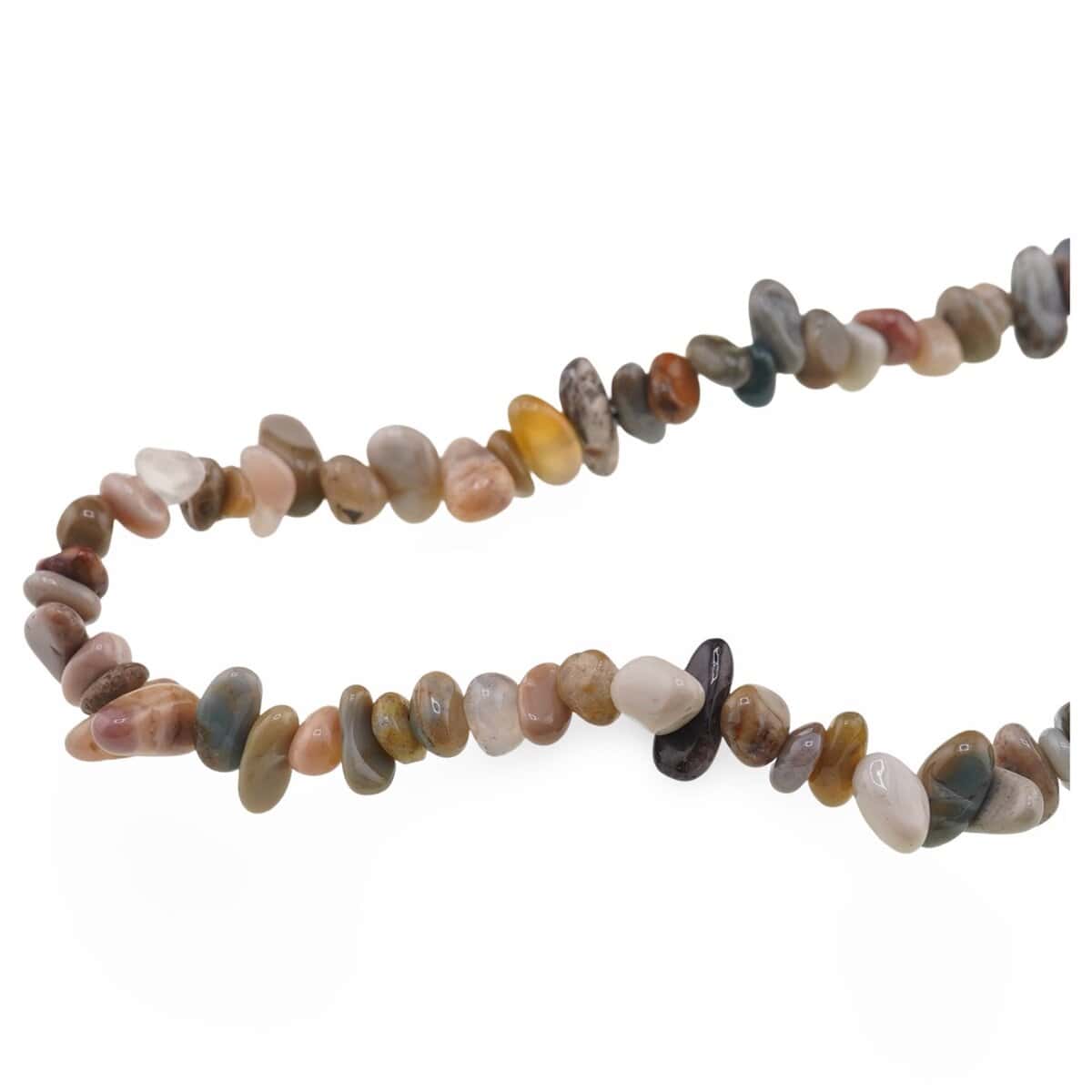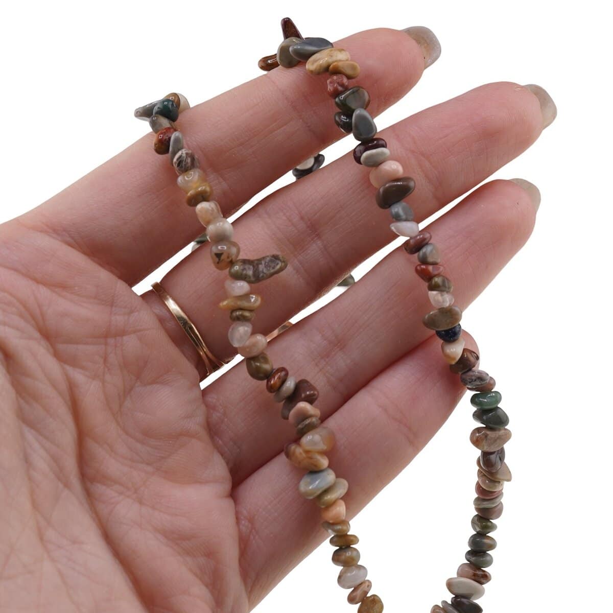 Realizat din cristal natural 100%, colierul păstrează textura ușor brută și formele neregulate ale pietrelor chips, oferind un aer natural și relaxat oricărei ținute. Nuanțele variate ale jaspului policrom – de la tonuri calde de pământ până la accente discrete de culoare – îl fac ușor de asortat atât la haine simple, cât și la ținute mai colorate.