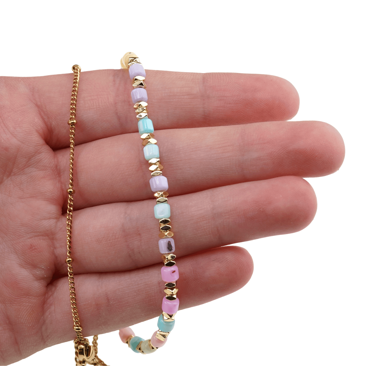 Colier Sidef multicolor cuburi cu elemente aurii, 3mm