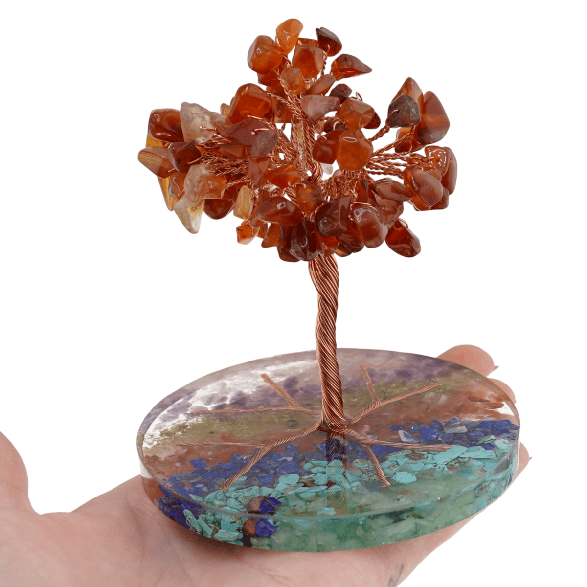 Copac Carneol chipsuri pe baza rotunda din rasina cu cristale 7 chakre, 9cm