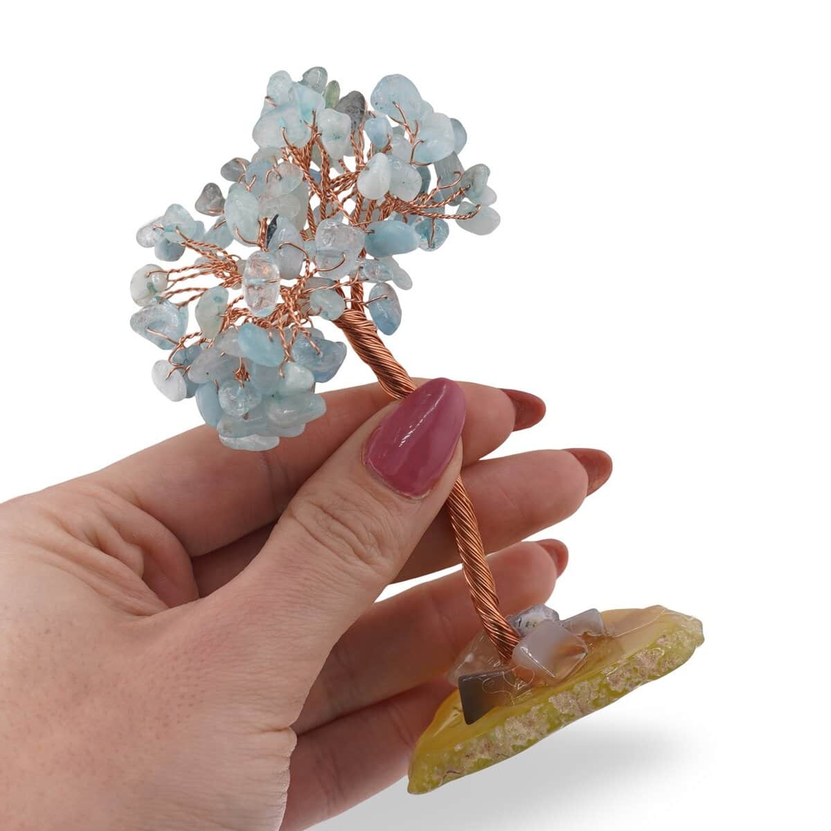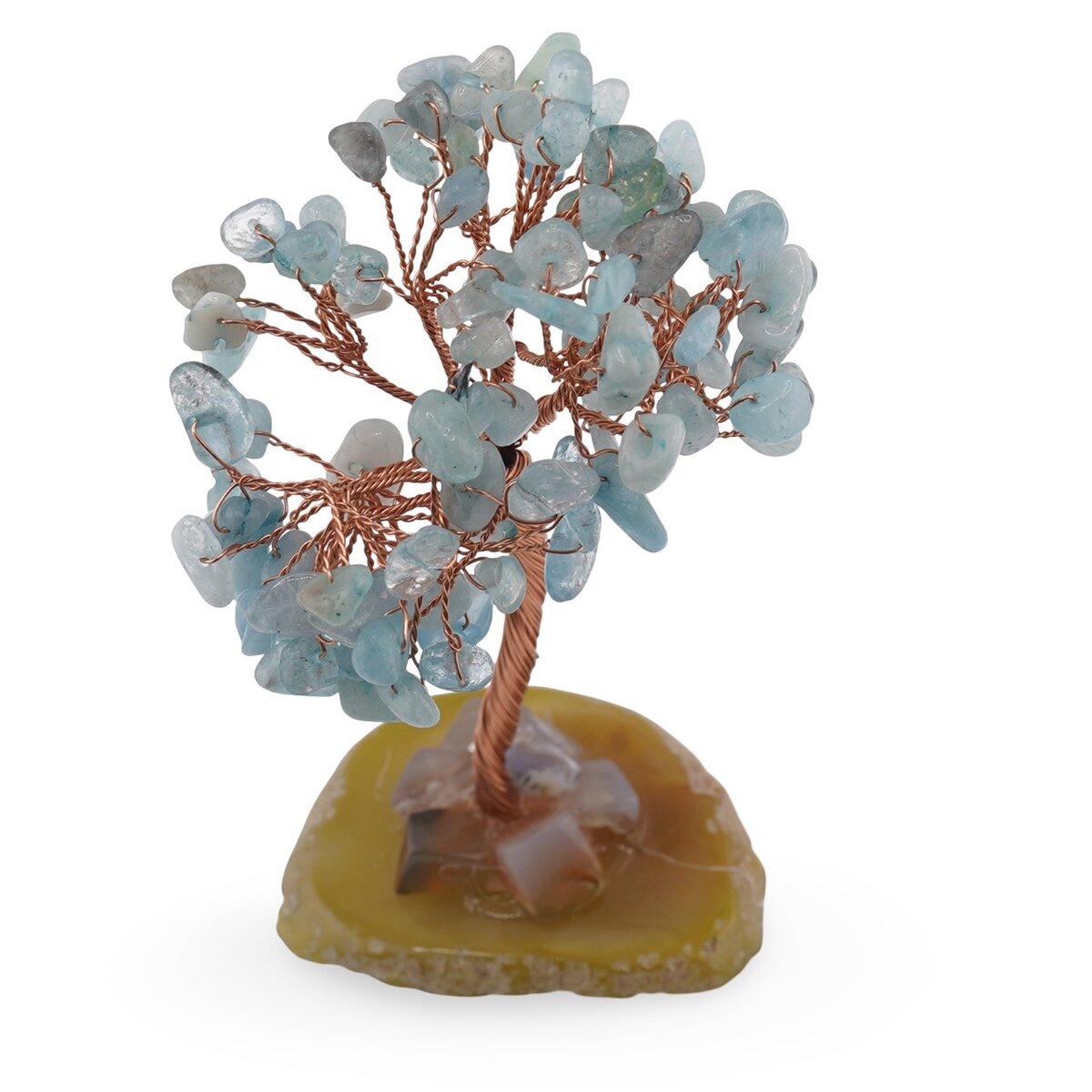 Copac decorativ cu Acvamarin și bază din Agat natural