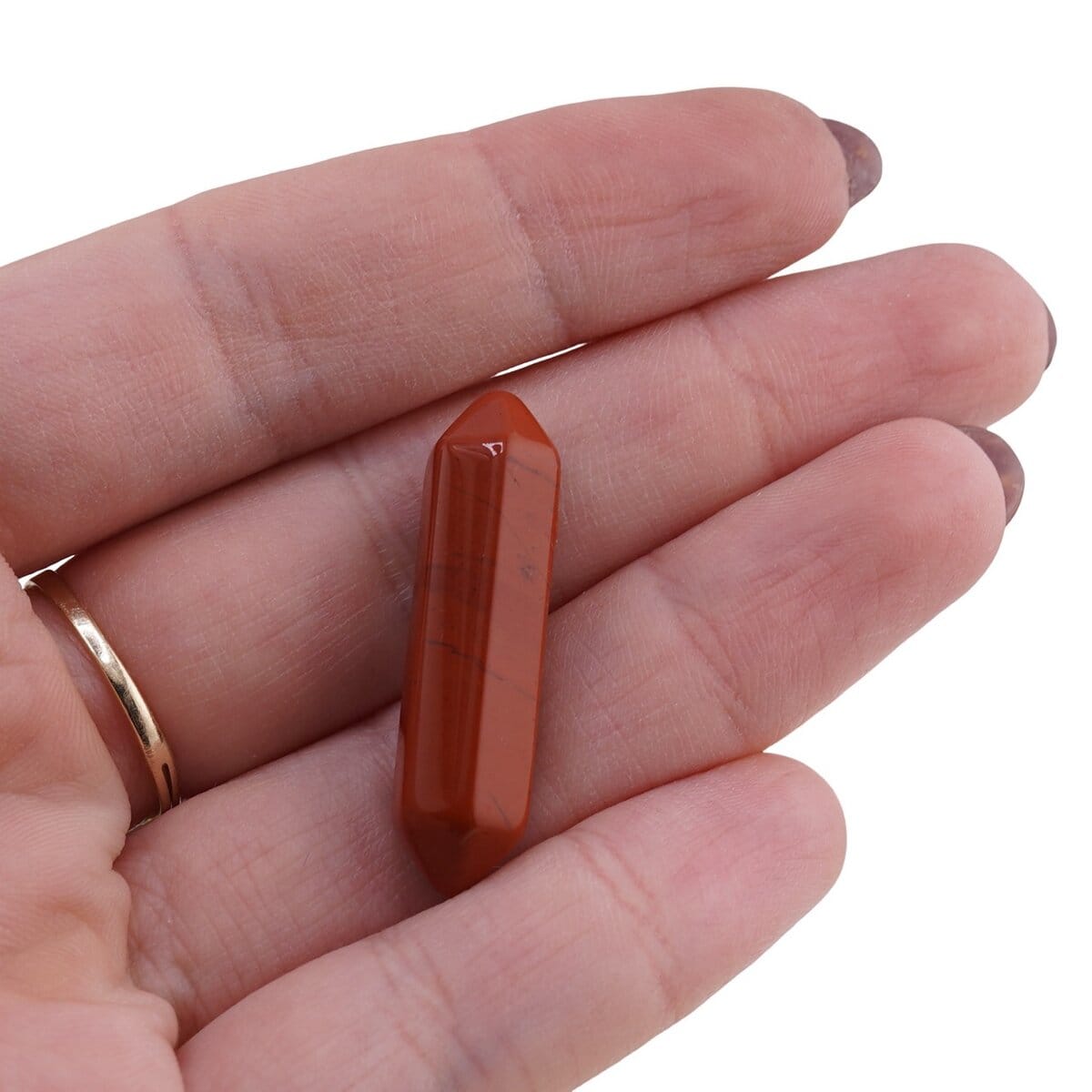 Piatra este un cristal natural, 100%, finisat în formă cu dublu vârf, astfel încât să poți lucra cu energia și intenția în ambele direcții, acolo unde ai nevoie de echilibru. Dimensiunea compactă, de aproximativ 32 mm, o face ușor de purtat cu tine sau de așezat pe spațiul de lucru, fără să ocupe mult loc. Nuanța de roșu are variații discrete, specifice jaspului, ceea ce adaugă farmec natural fiecărei piese.