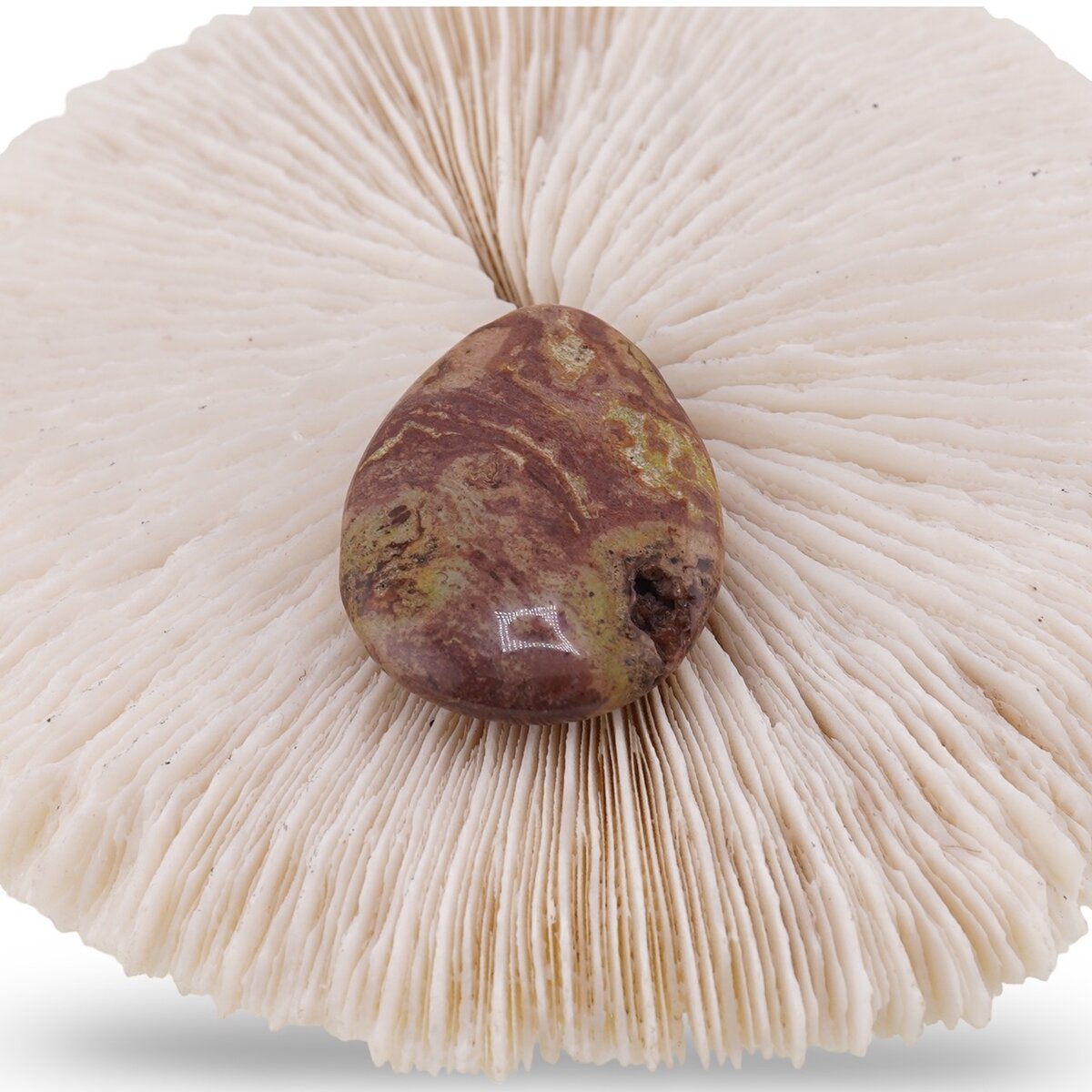 Cristalul natural Opal fistic șlefuit plat te întâmpină cu nuanțe plăcute de verde, asemănătoare unui peisaj proaspăt după ploaie. Forma sa de picătură, fin rotunjită și ușor de ținut în mână, îl transformă într-o piatră ideală pentru meditație, lucru cu intenții sau pur și simplu pentru momentele în care ai nevoie de liniște interioară. Dimensiunea compactă, de aproximativ 4x3 cm, îl face ușor de purtat cu tine în geantă sau în buzunar, pentru a te însoți pe parcursul zilei.