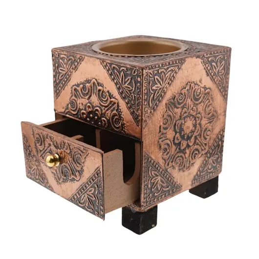 Cutie din lemn pentru depozitare si fumigatie, model metalic - 10cm