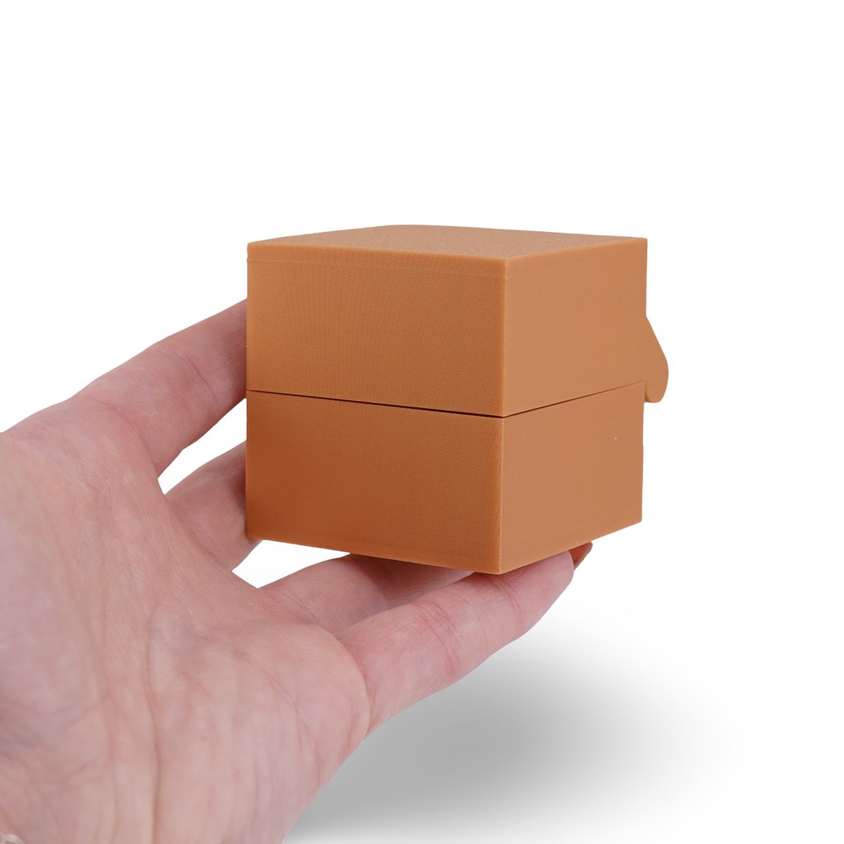 Realizată din PLA premium, un tip de plastic rezistent, netoxic și considerat o opțiune mai prietenoasă cu mediul, cutia beneficiază de o printare 3D de precizie, ceea ce îi conferă un aspect îngrijit și o deschidere lină. Culoarea caldă de galben închis aduce un plus de veselie discretă, fără să fie stridentă, și se potrivește cu decoruri diferite, de la spații simple până la colțuri mai colorate.