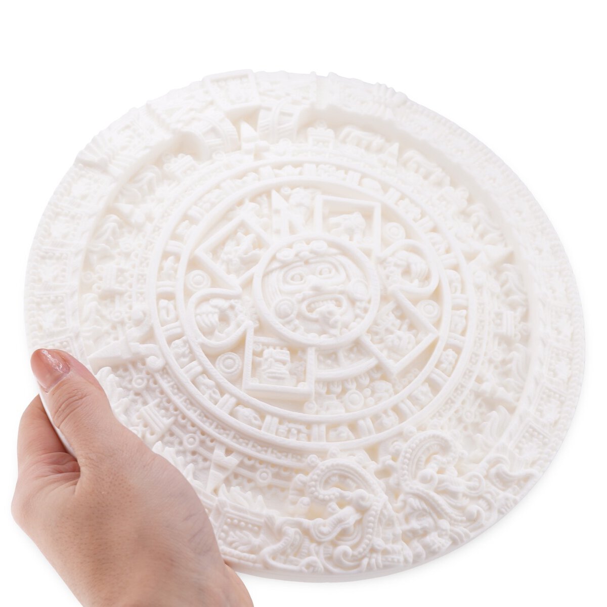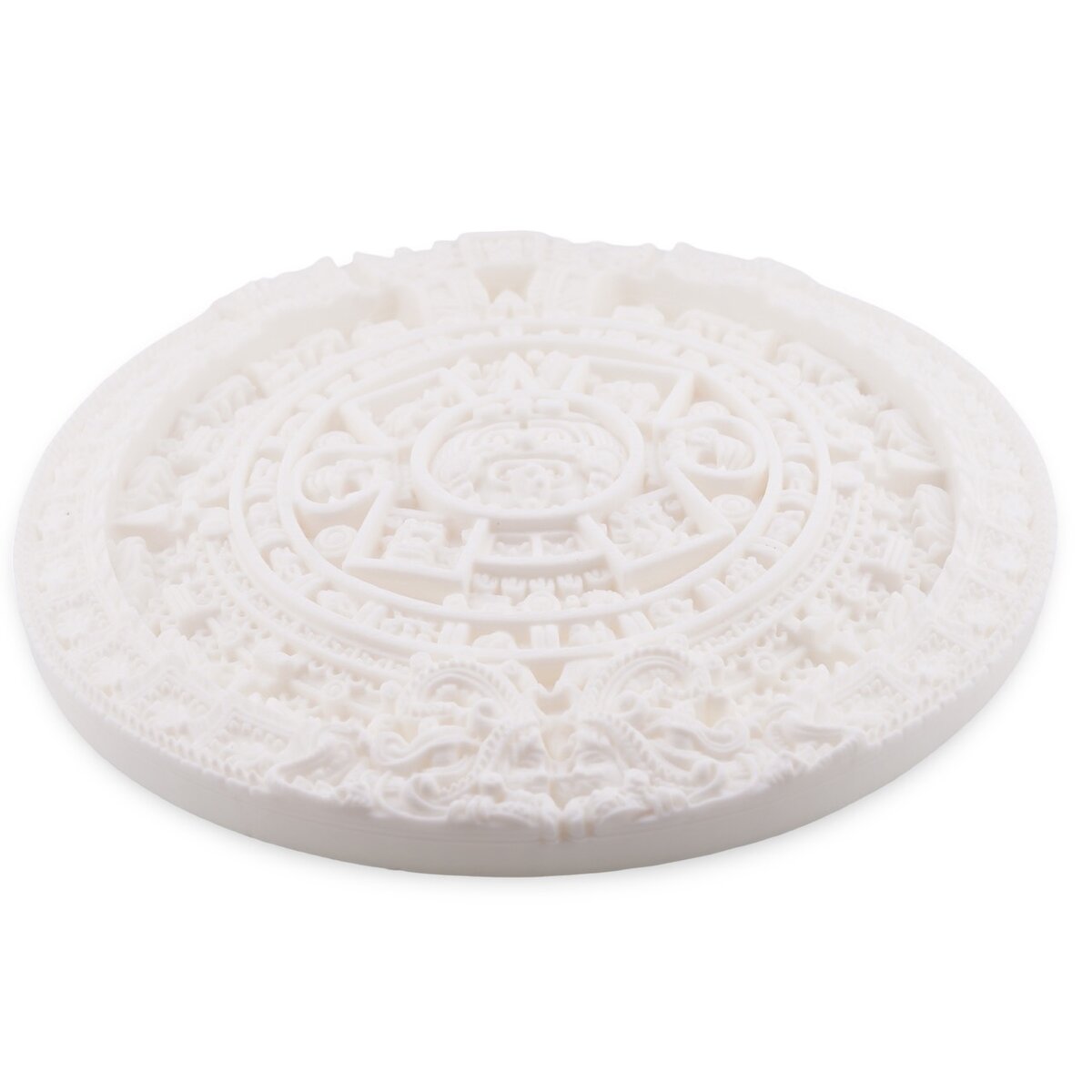 Decoratiunea Calendarul Aztec - Piatra Soarelui este creată pentru tine dacă îți dorești un obiect de accent care să aducă personalitate și simbolism în casă. Discul rotund, în nuanță de alb, pune în evidență reproducerea detaliată a celebrului calendar aztec, realizat în relief, astfel încât fiecare linie și simbol să iasă ușor în evidență și să atragă privirea.