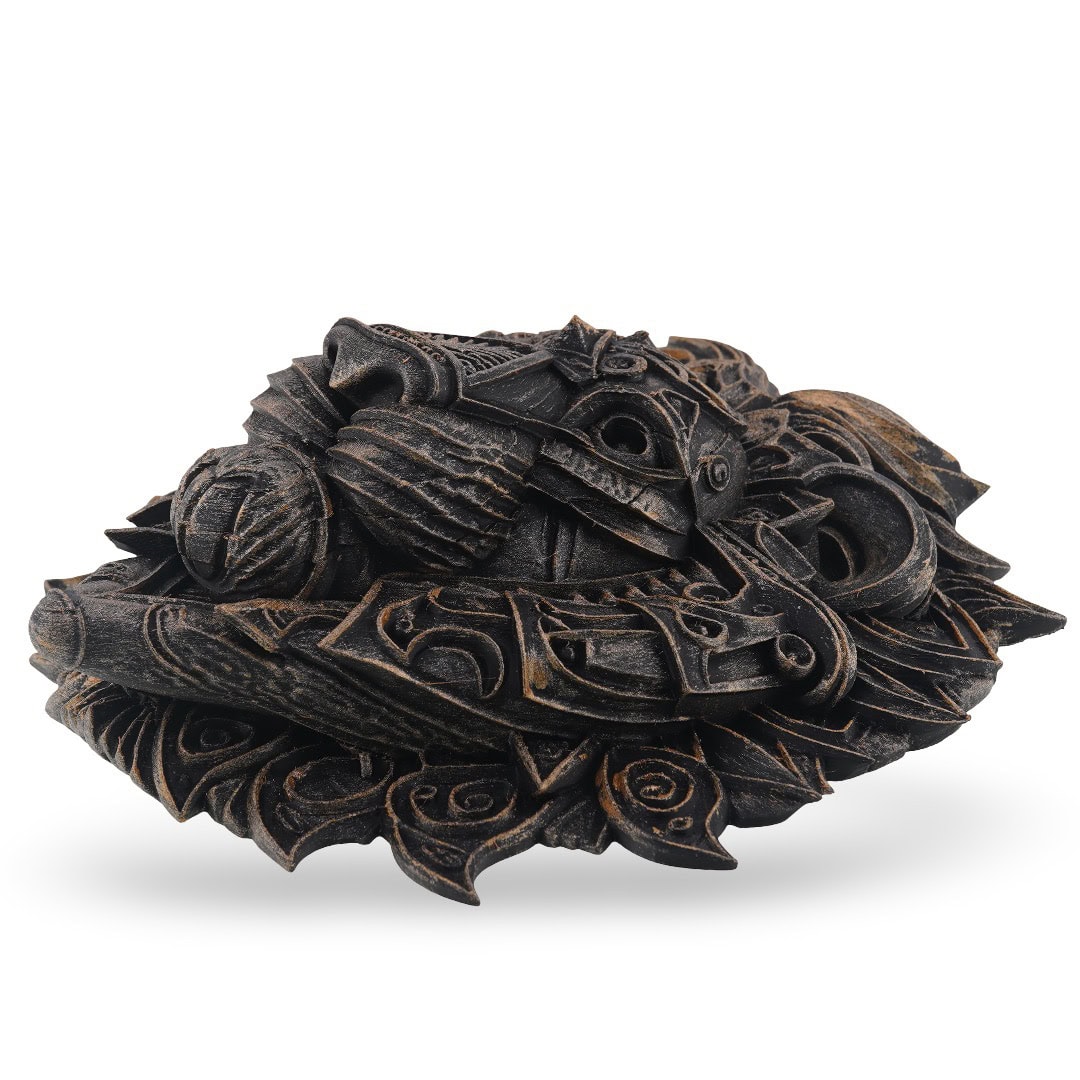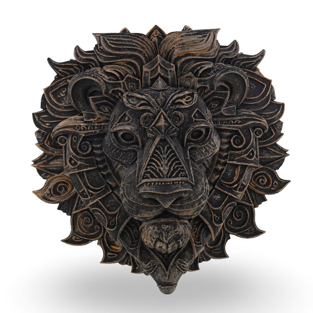 Decoratiune Cap de Leu cu detalii tribale gravate antichizata manual – 18,5cm