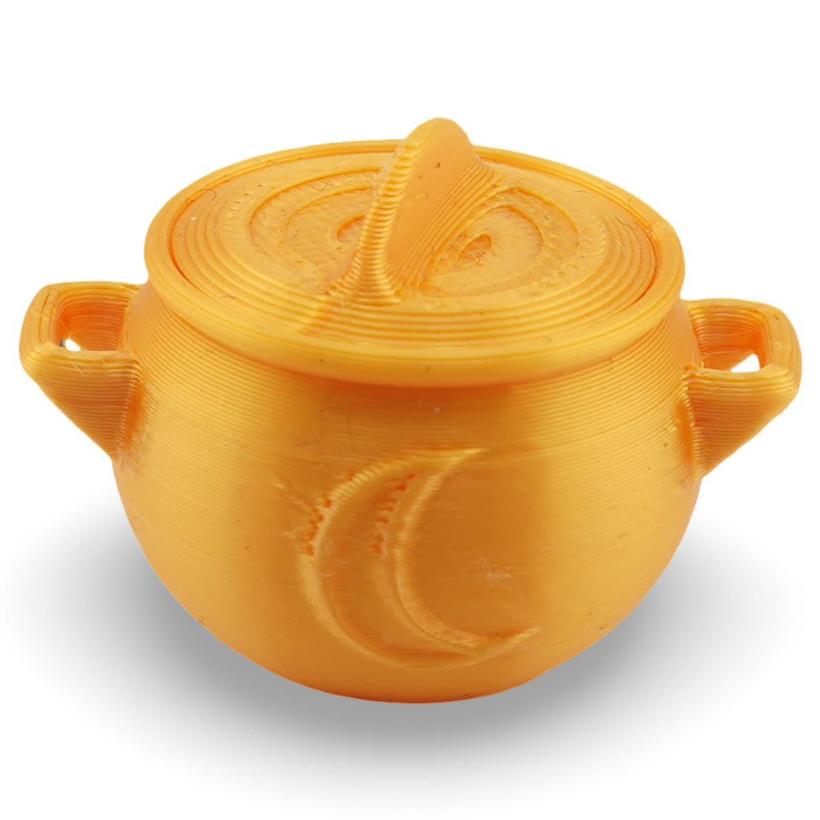 Decoratiunea mini ceaun ritualic cu capac, auriu, este o piesă decorativă de mici dimensiuni, potrivită pentru colțurile spirituale, altarul personal, spațiile de meditație sau pentru un decor tematic discret. Realizat din PLA premium, un plastic rezistent, netoxic și ecologic, folosit în printare 3D de precizie, acest mini ceaun îmbină aspectul simbolic cu un finisaj atent, ușor de integrat în amenajări inspirate din zona feng shui, aromaterapie sau ritualuri personale.