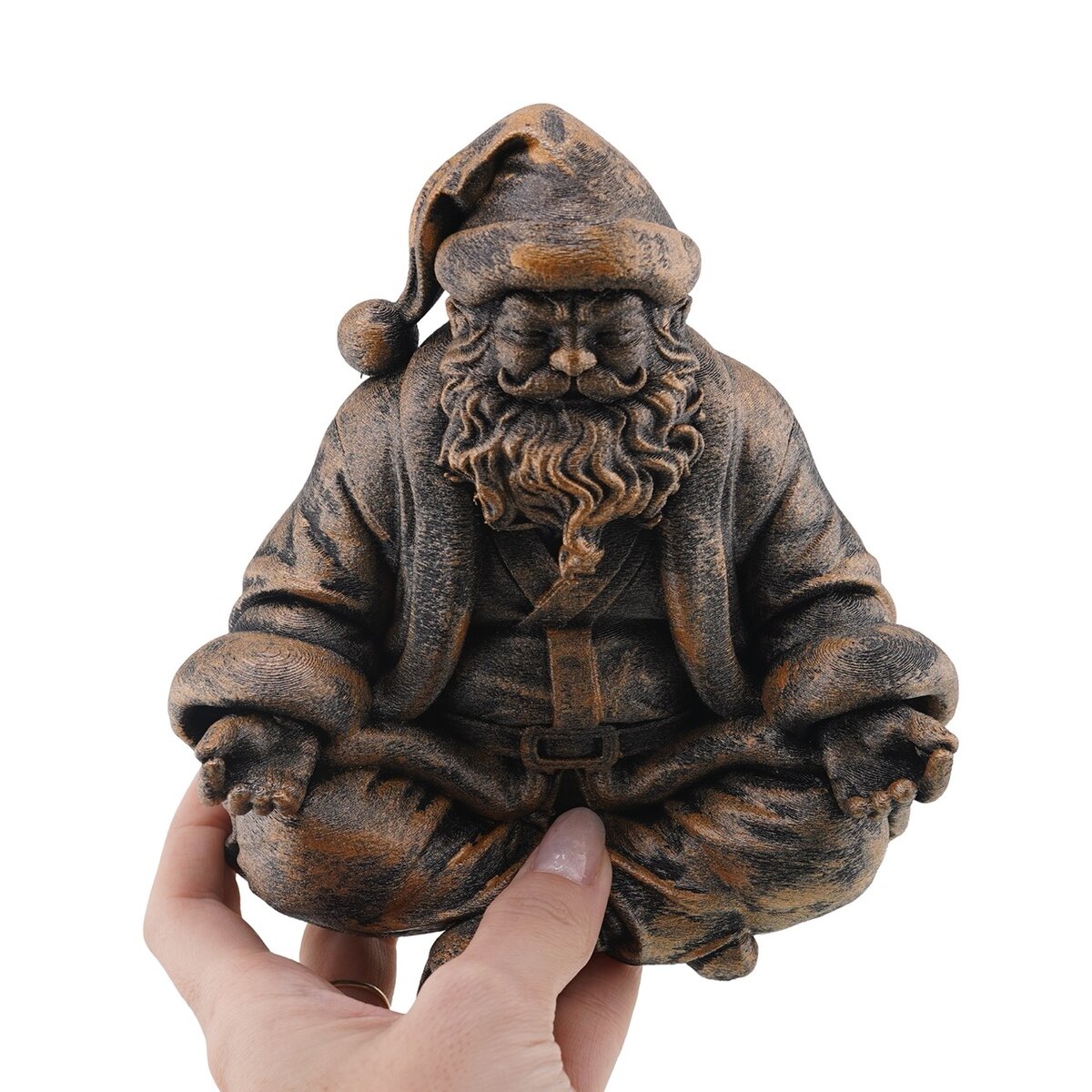 Statueta are aproximativ 14,5 cm înălțime și este realizată din PLA premium, un plastic rezistent, netoxic și prietenos cu mediul, folosit în printarea 3D de precizie. Acest material îi oferă stabilitate, iar detaliile sunt bine conturate, astfel încât expresia lui Moș Crăciun și pliurile hainelor să fie plăcute privirii din orice unghi. Combinația de auriu și negru pune în valoare modelul și creează un joc interesant de lumini și umbre, potrivit atât pentru spații moderne, cât și pentru decoruri mai tradiționale.