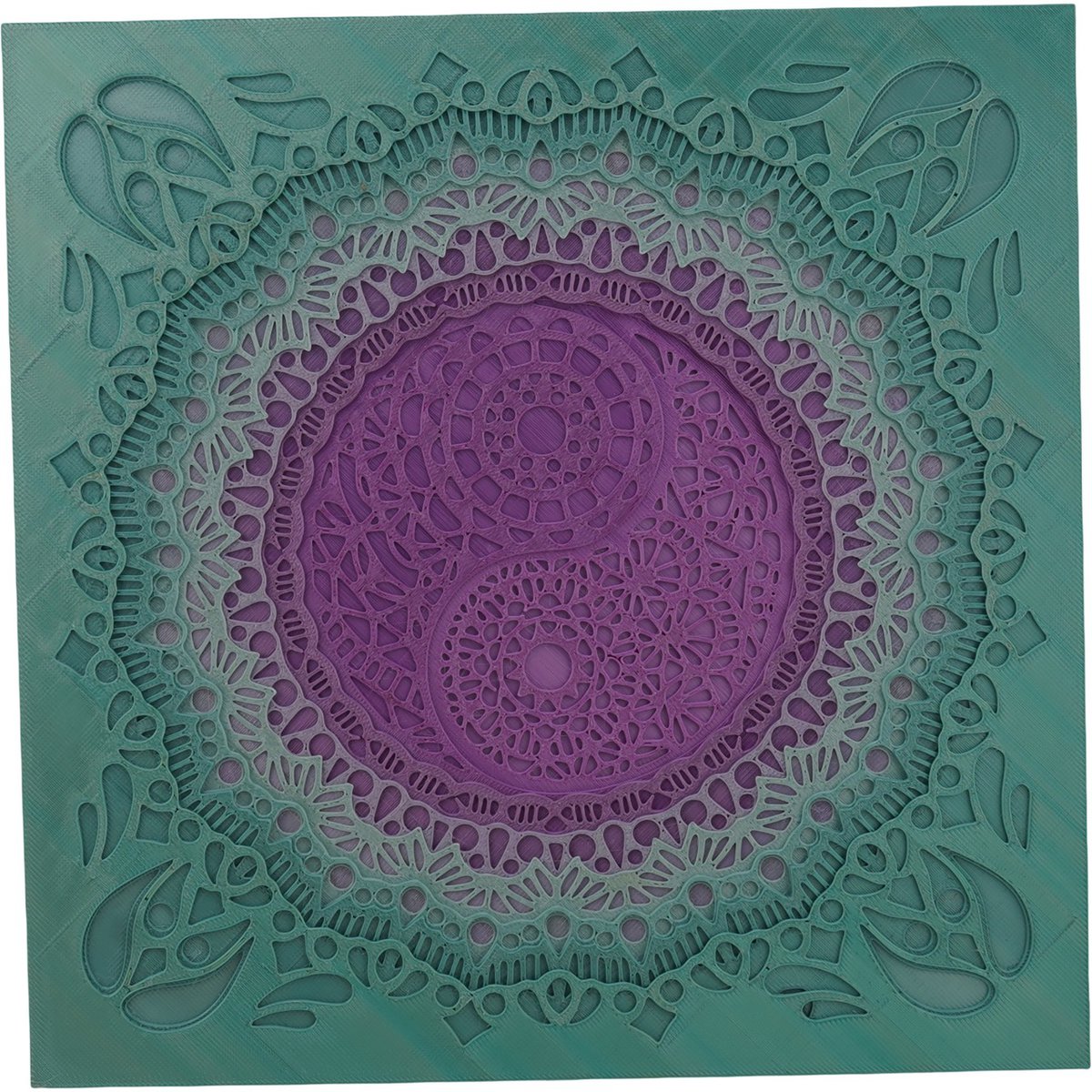 Decoratiune patrata layered cu simbolul Yin Yang, multicolor - 21cm