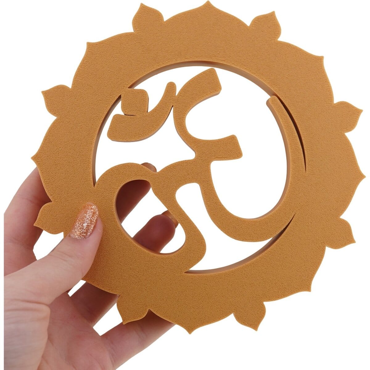 Decoratiunea rotunda cu floare de lotus si simbolul OM, in nuanta calda de galben, este gandita pentru tine daca vrei sa adaugi un accent spiritual discret in spatiul tau. Cu un diametru de 14 cm si o grosime de aproximativ 2 cm, aceasta piesa este suficient de vizibila pentru a atrage privirea, dar ramane in acelasi timp usor de integrat in orice colt al casei.
