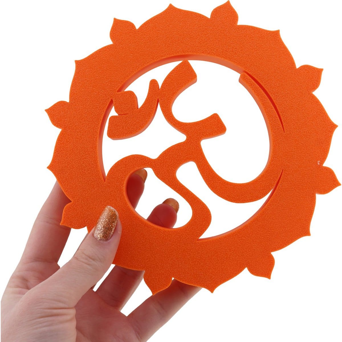 Decoratiunea rotunda cu floare de lotus si simbolul OM, in nuanta calda de portocaliu, este gandita pentru tine daca vrei sa aduci mai multa liniste si inspiratie in spatiul in care petreci timpul. Cu un diametru de 14 cm, acest obiect discret se integreaza usor pe un birou, pe noptiera sau pe un raft, devenind un punct calm de atractie vizuala.