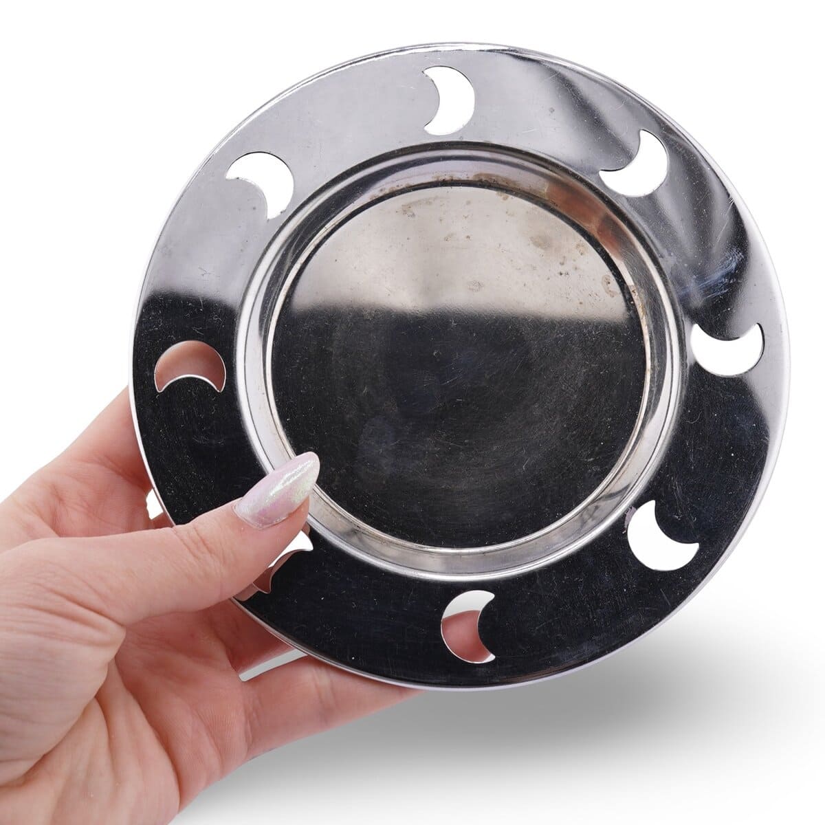 Decupajele cu lună aduc un detaliu simbolic și plăcut privirii, completând atmosfera unui colț de relaxare sau a unui mic aranjament decorativ. Poți așeza pe farfurie un colier preferat, câteva pietre semiprețioase sau un smudge mic de palo santo (rece), transformând o suprafață simplă într-un punct de interes. Aspectul argintiu se potrivește atât cu decoruri moderne, cât și cu interioare cu influențe clasice, întregind un stil curat și coerent.