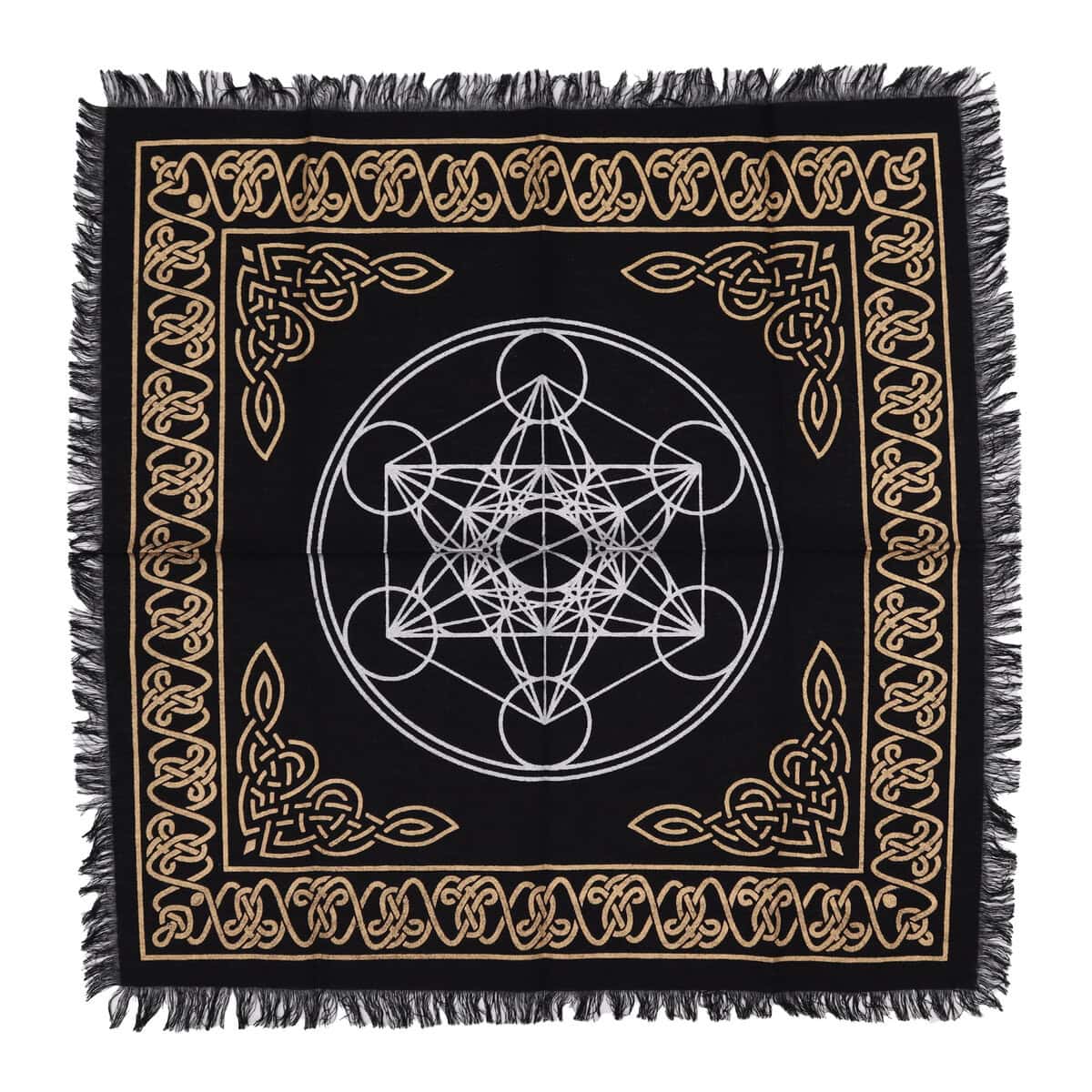 Fata de masa pentru Tarot din bumbac cu franjuri, cu Diagrama Chakre, este creată pentru a-ți oferi un spațiu clar și bine definit atunci când lucrezi cu cărțile tale. Fundalul negru pune în evidență simbolurile și culorile chakrelor, astfel încât fiecare etalare să fie mai ușor de urmărit și interpretat, fără elemente care să îți distragă atenția.