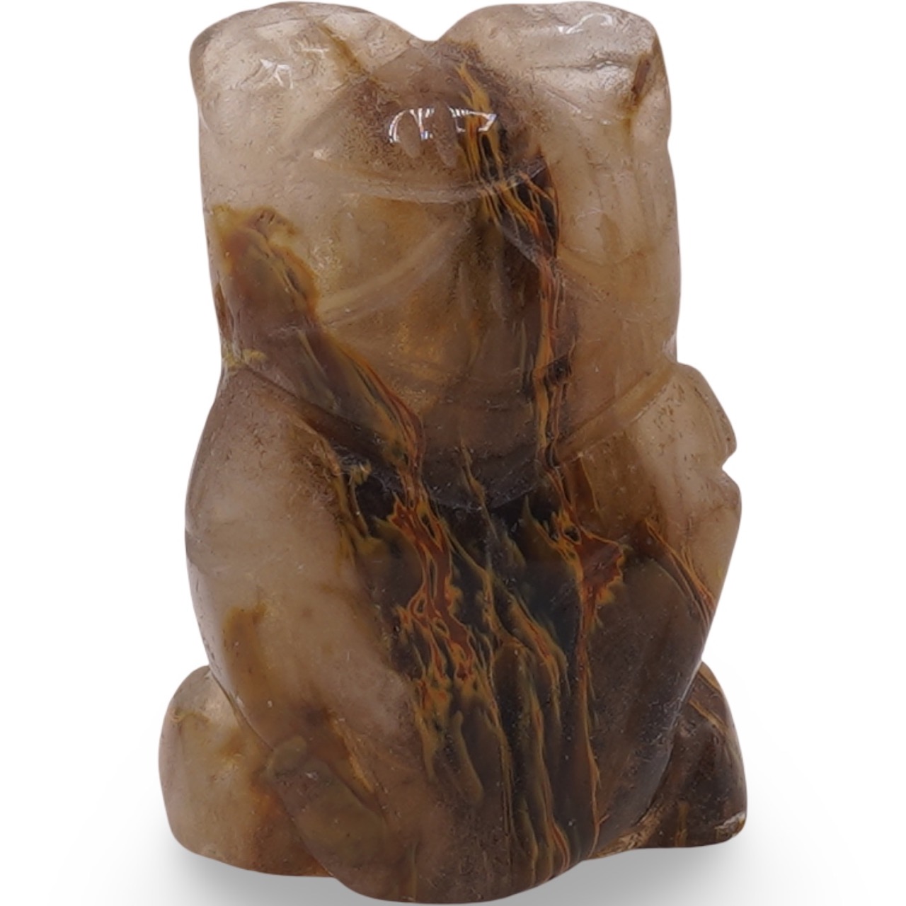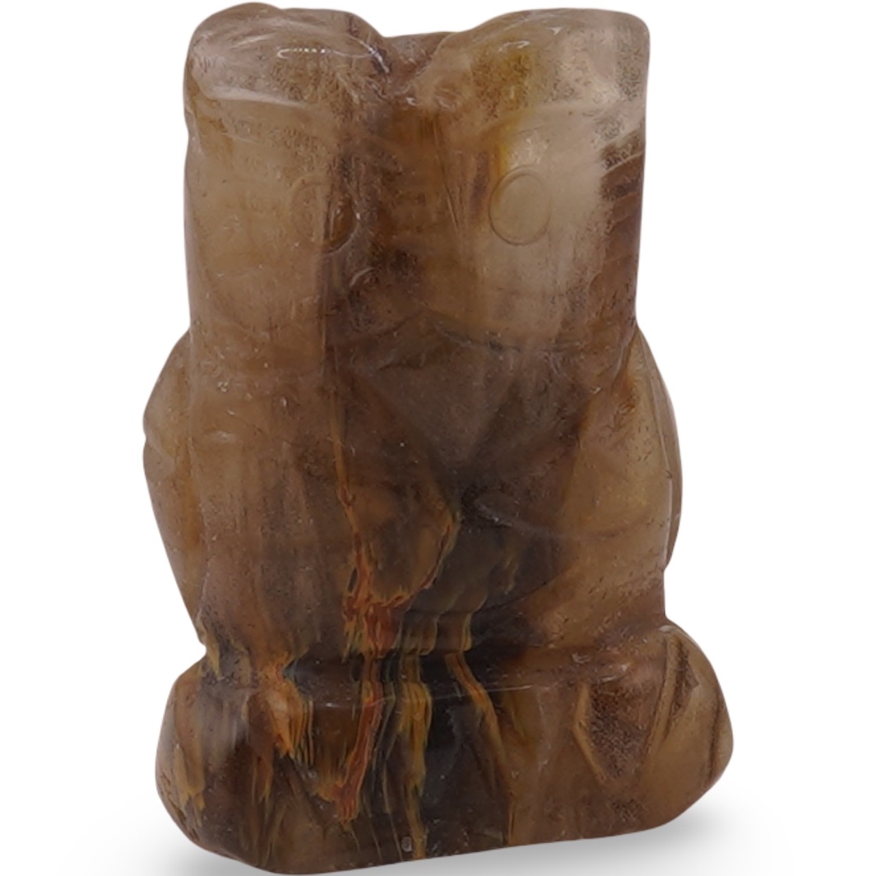 Forma de bufniță este atent conturată în cristal, astfel încât detaliile să rămână clare, chiar dacă piesa are dimensiuni reduse, de aproximativ 4,5 cm înălțime și 3 cm lățime. Aspectul compact și ușor al figurinei o face simplu de mutat dintr-un loc în altul, astfel încât să o poți ține pe birou, pe noptieră sau în colțul preferat de meditație. Nuanțele de maro ale cuartului fantomă oferă o prezență caldă și discretă, ușor de integrat în orice decor.