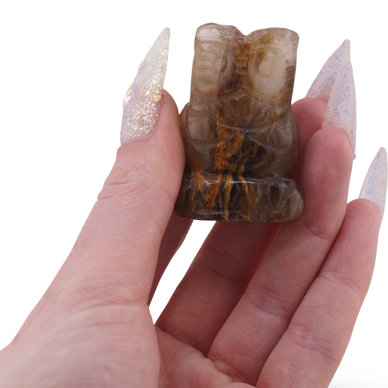 Figurina gravată Bufniță din Cuart fantomă este creată pentru tine dacă îți dorești o piesă discretă, dar expresivă, pe care să o ții aproape în momentele de introspecție. Realizată integral din cristal natural de cuart fantomă, această mică bufniță maro îmbină simbolul înțelepciunii cu energia blândă a pietrei semiprețioase, aducând un plus de calm spațiului în care o așezi.