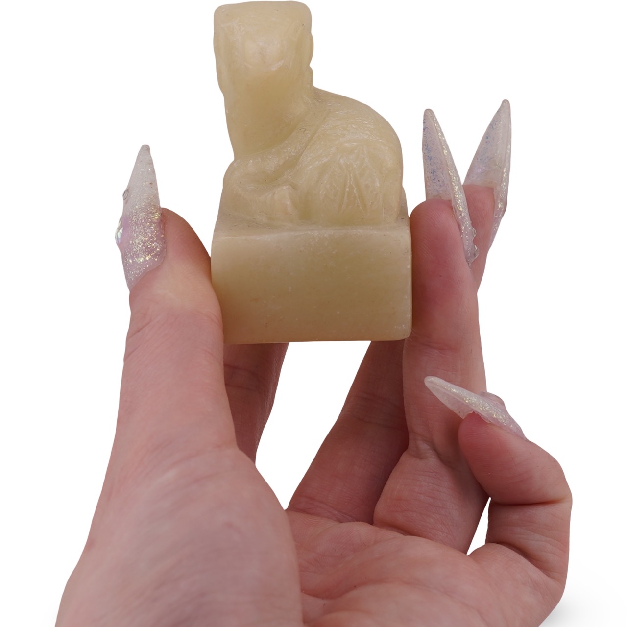 Figurina gravată din Jadeit în formă de capră este creată pentru tine dacă îți dorești un obiect din cristal natural care să aducă mai mult echilibru și calm în spațiul tău. Realizată din jadeit veritabil, cunoscut și sub numele de jade, nefrit sau piatra armoniei, această mică statuetă de aproximativ 5 cm se remarcă prin nuanțele de verde liniștitor și prin detaliile fine ale formei de capră.