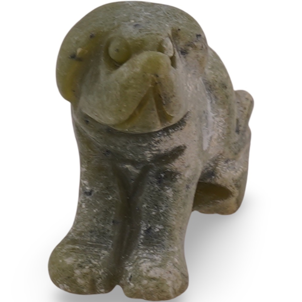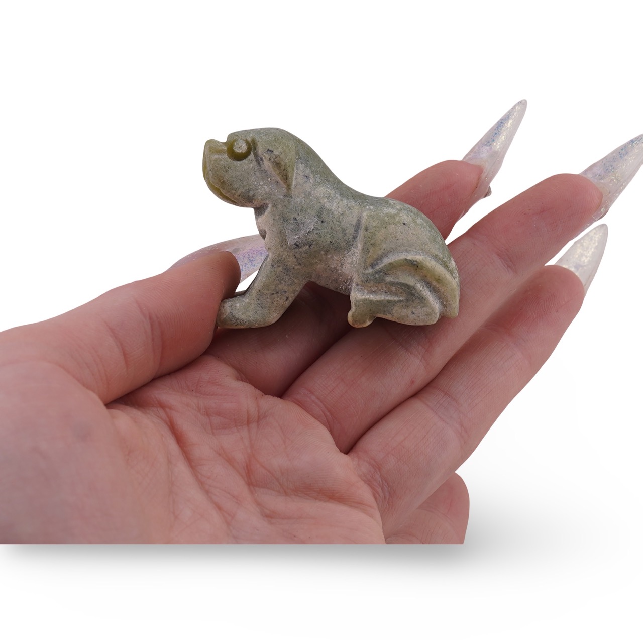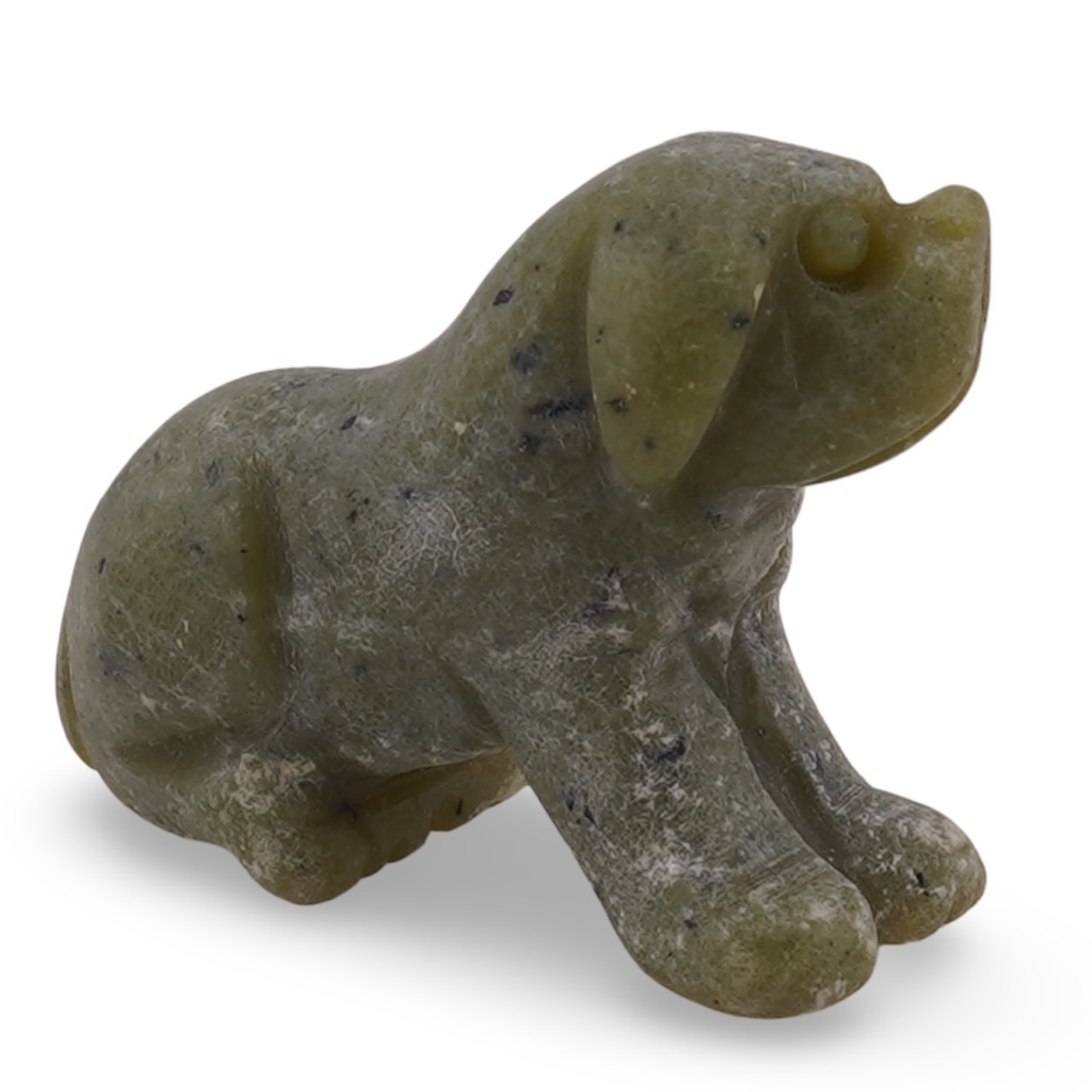 Jadeitul, cunoscut și sub numele de jade, nefrit sau „piatra armoniei”, este apreciat pentru energia sa blândă, asociată cu sănătatea, susținerea proceselor de vindecare și stabilitatea emoțională. Forma de cățel amplifică ideea de loialitate, protecție și devotament, astfel că figurina poate deveni un simbol discret al relațiilor de încredere din viața ta sau al iubirii necondiționate.