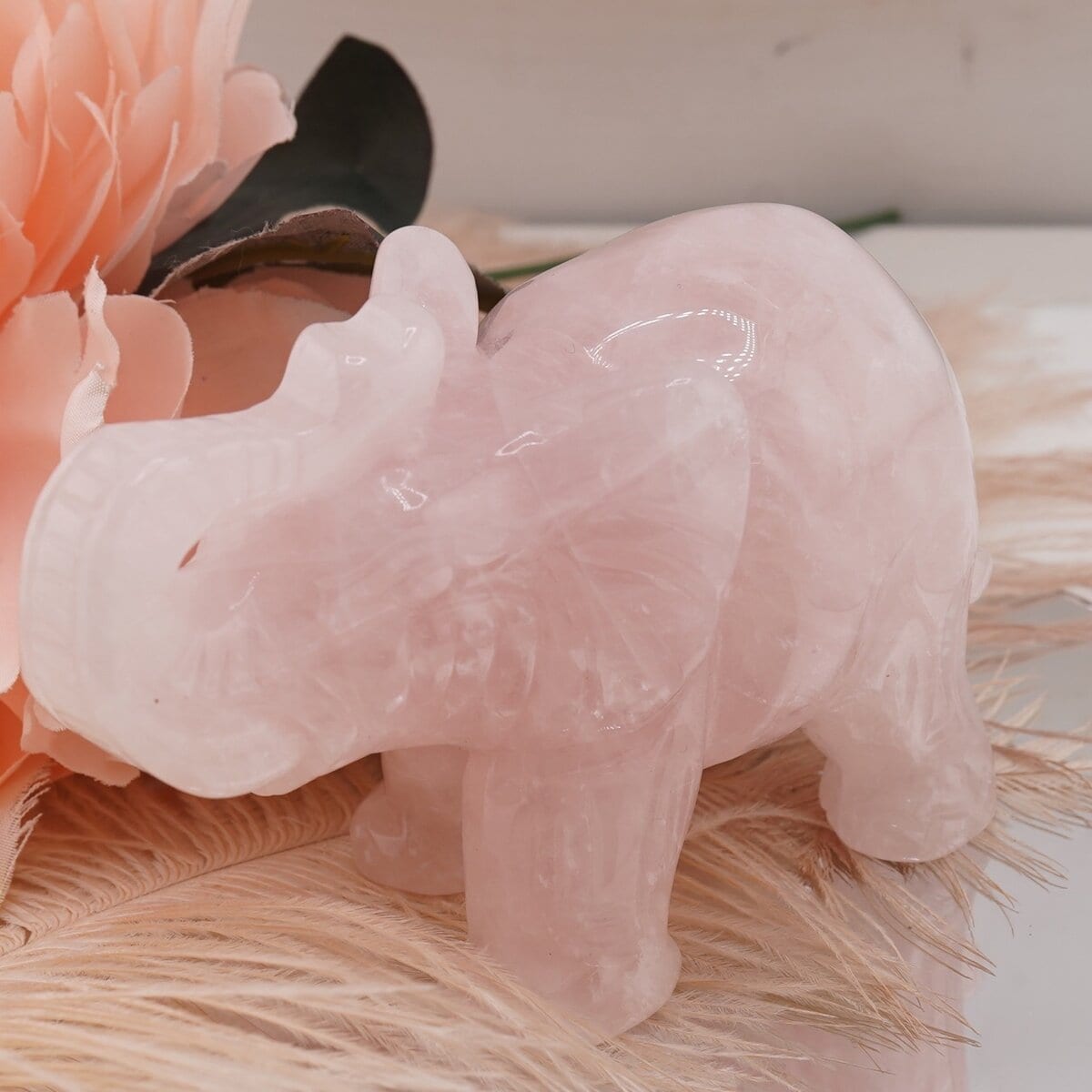 Alege figurina gravată elefant din Cuart roz pentru a aduce un accent de naturalețe și sensibilitate în spațiul tău și lasă farmecul acestei pietre semiprețioase să îți înfrumusețeze fiecare zi.